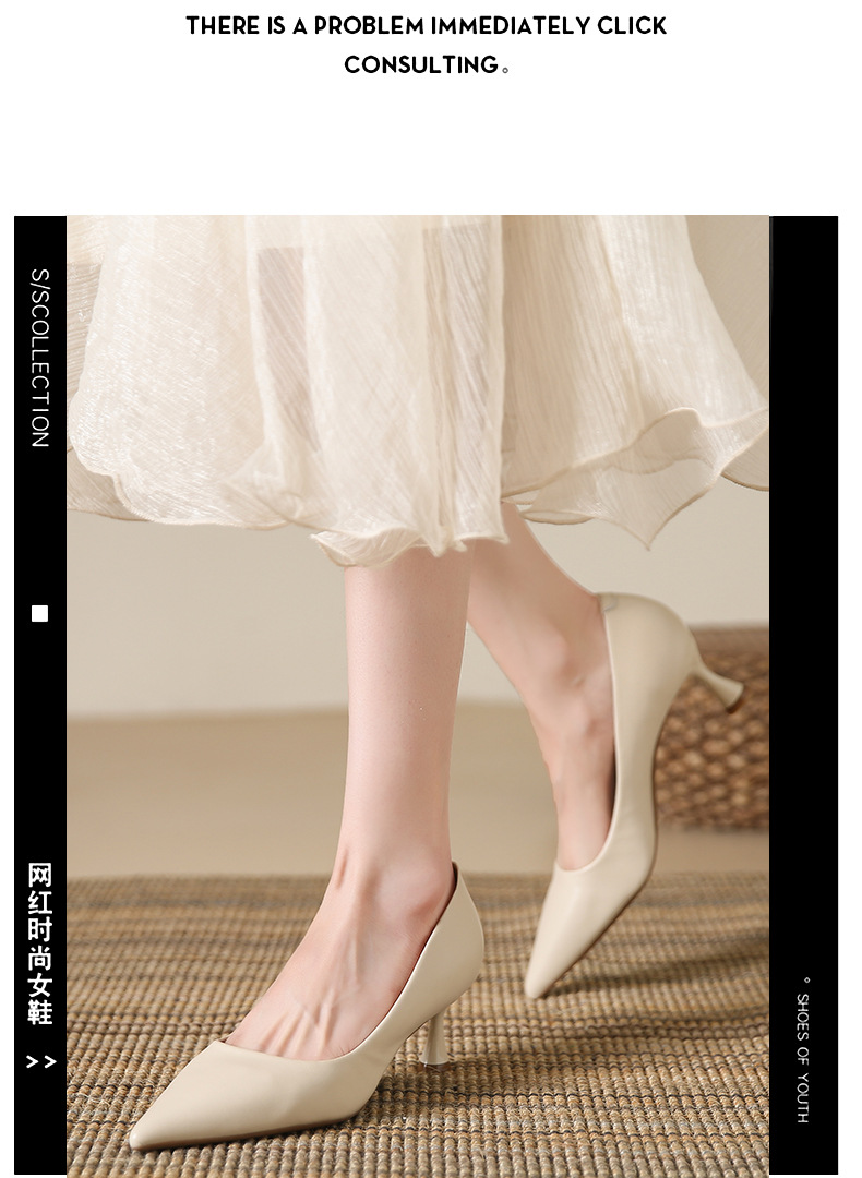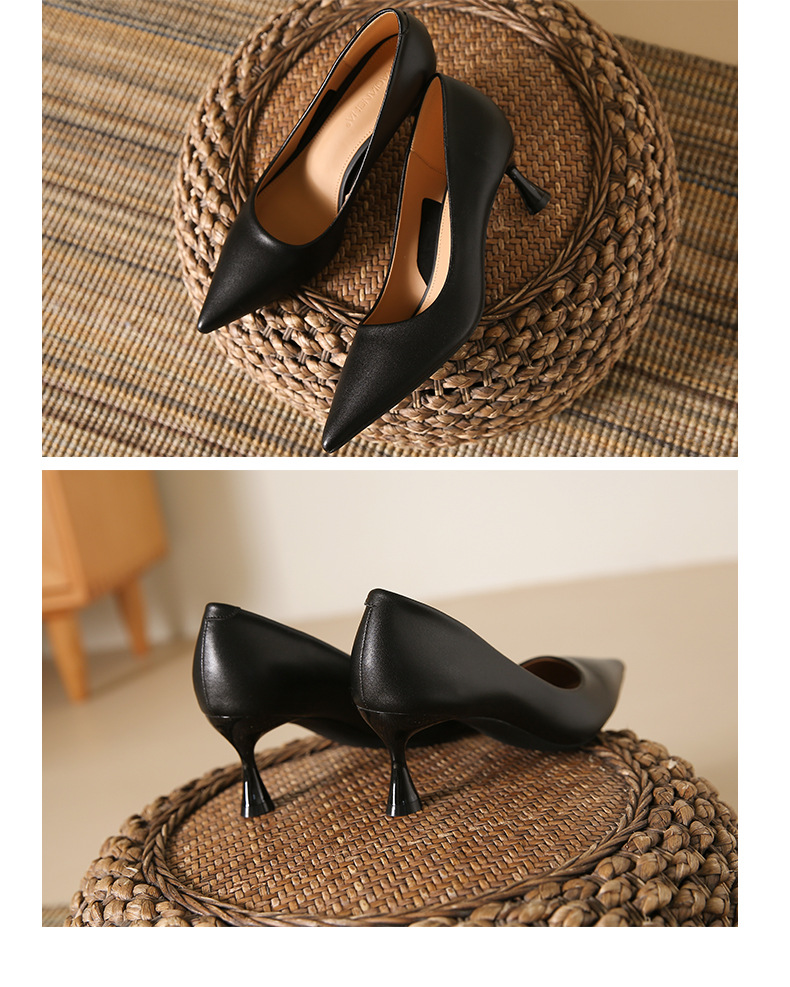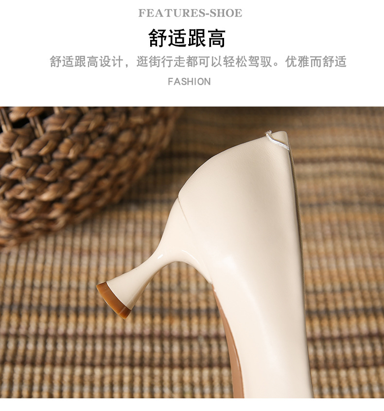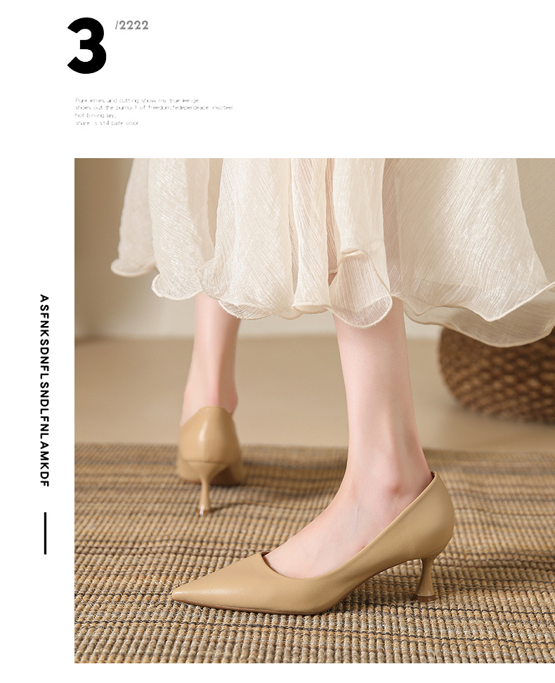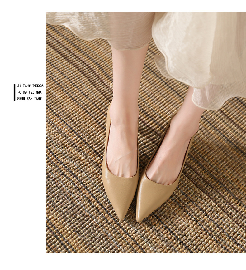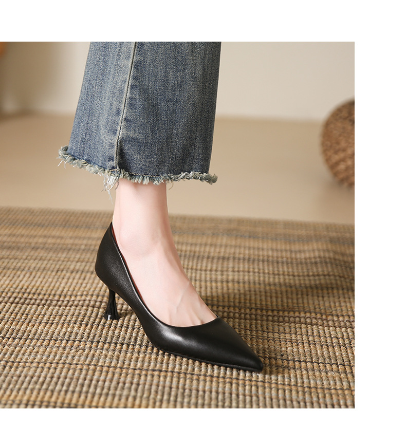 高跟鞋羊皮浅口细跟单鞋尖头女鞋通勤裸色女高跟低帮真皮婚鞋