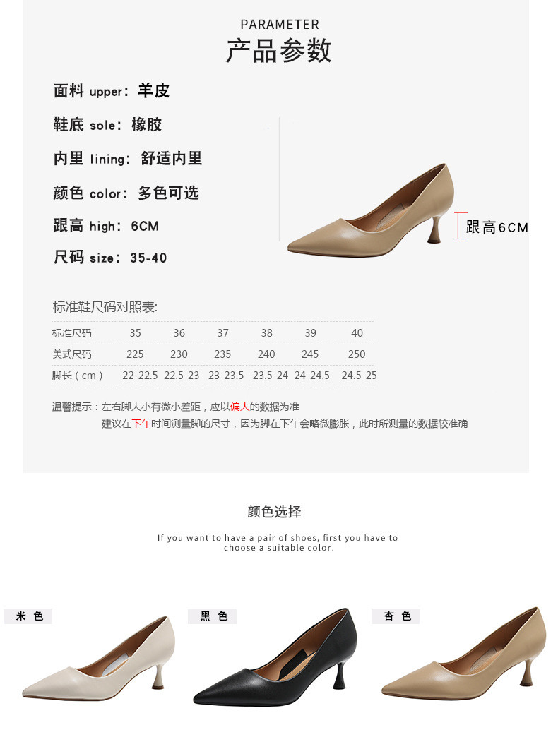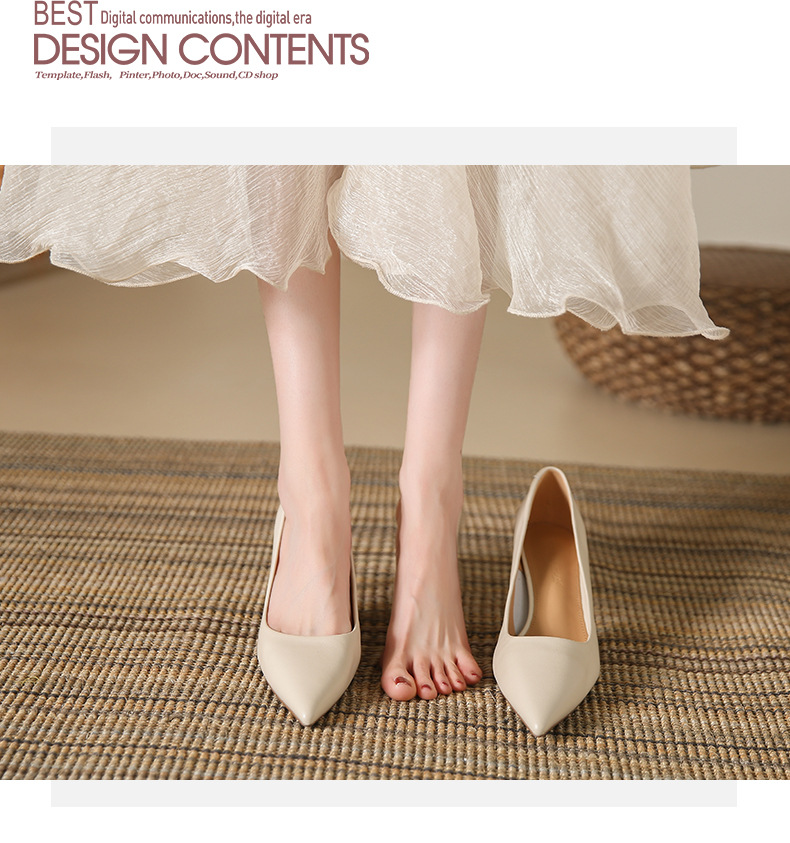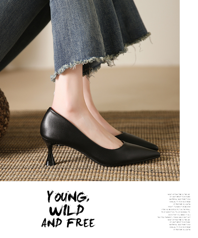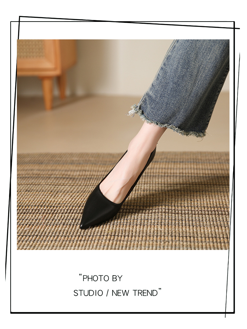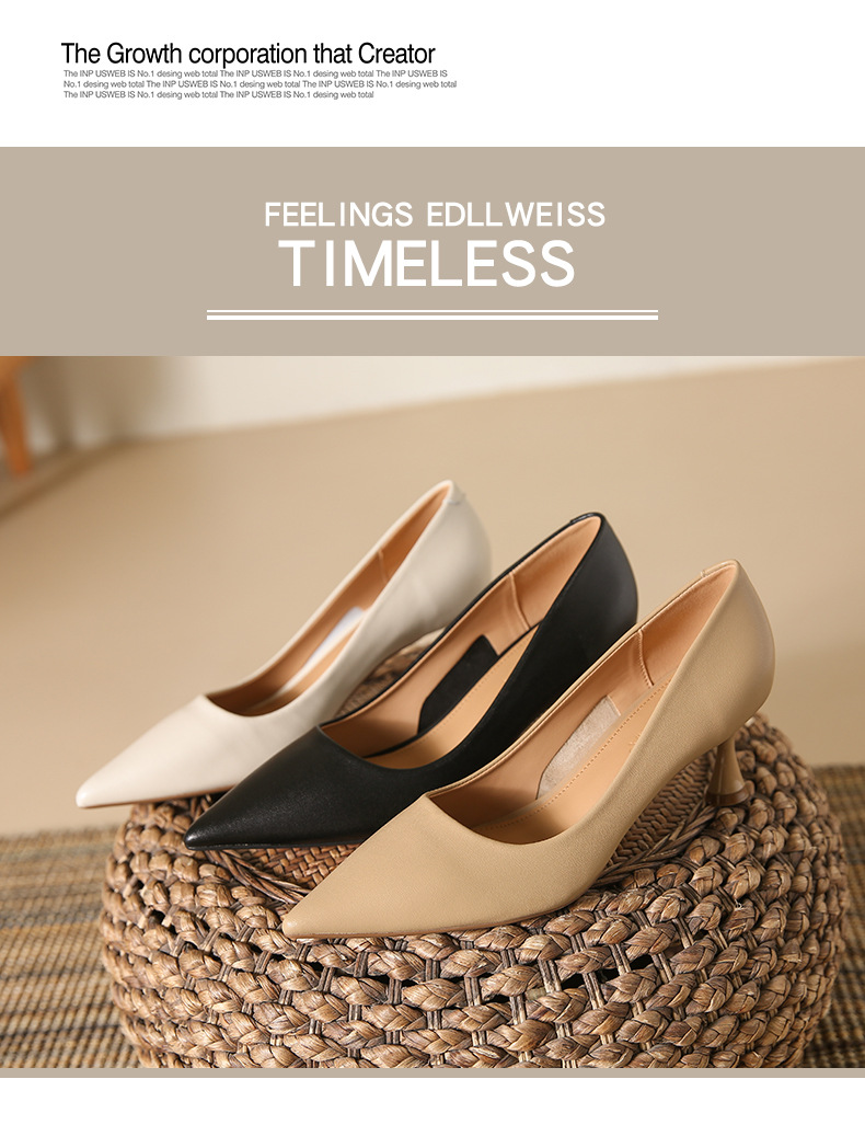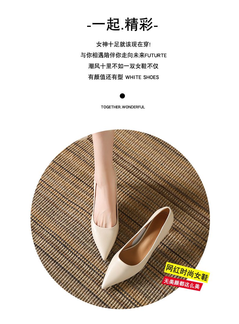 高跟鞋羊皮浅口细跟单鞋尖头女鞋通勤裸色女高跟低帮真皮婚鞋