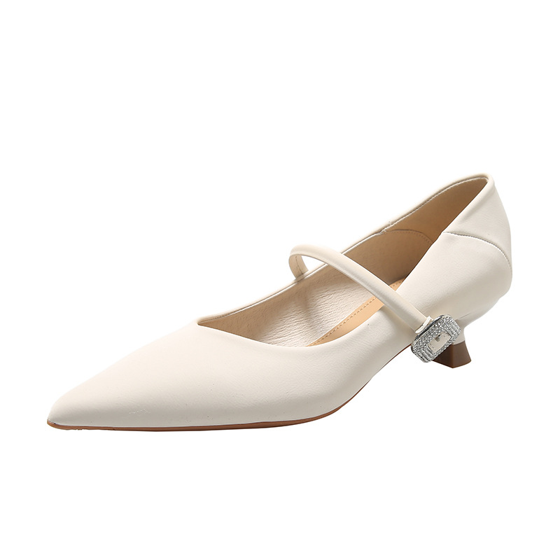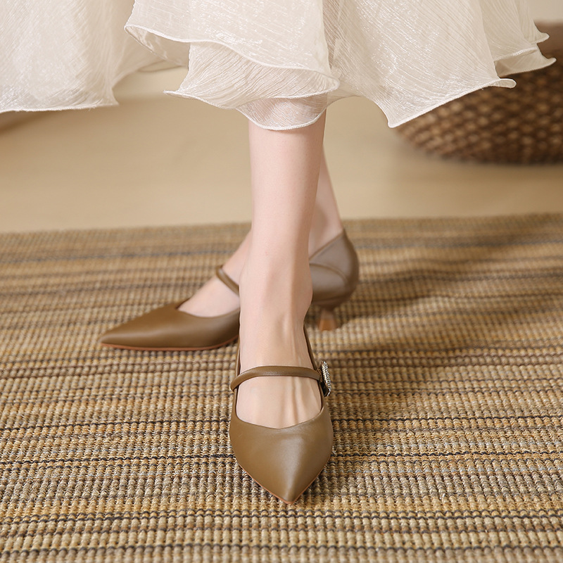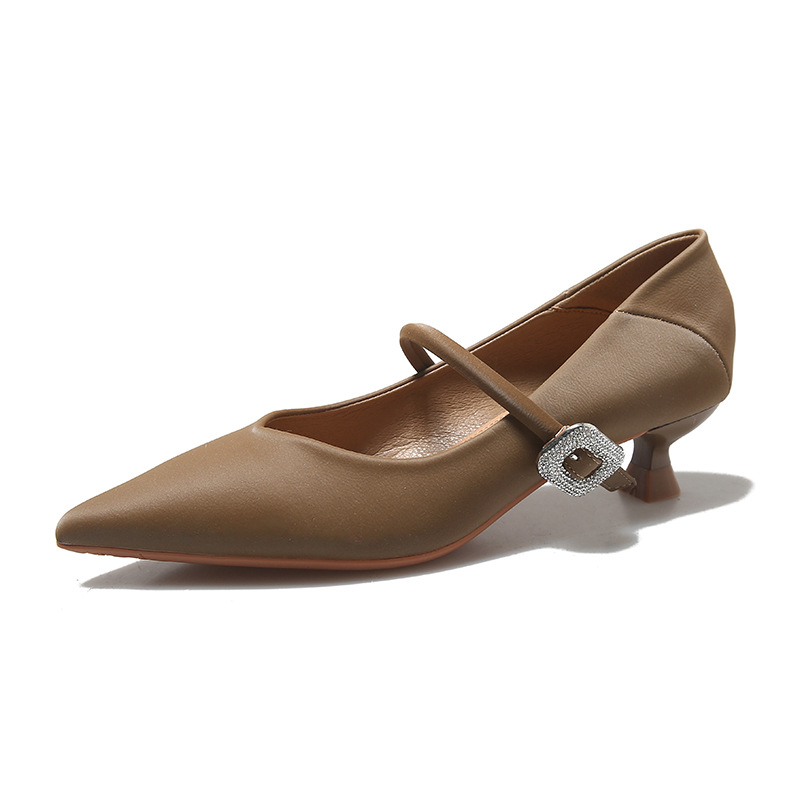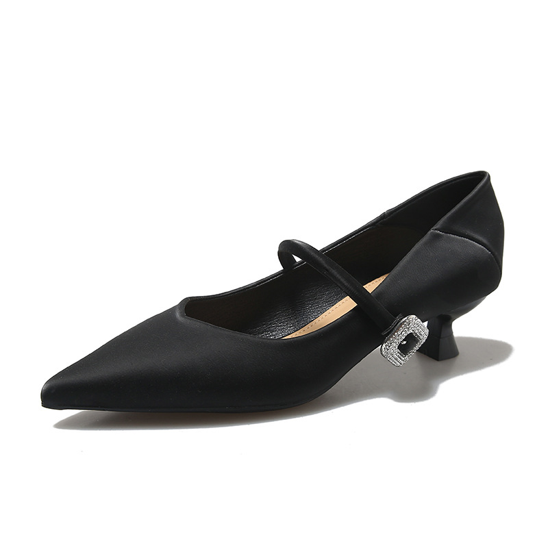 52397-75【羊皮】尖头水钻高跟鞋女新款网红一字带猫跟单鞋女