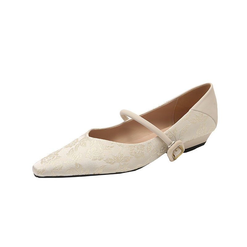新中式国风浅口平底单鞋夏季新款高级缎面复古尖头一字带女鞋