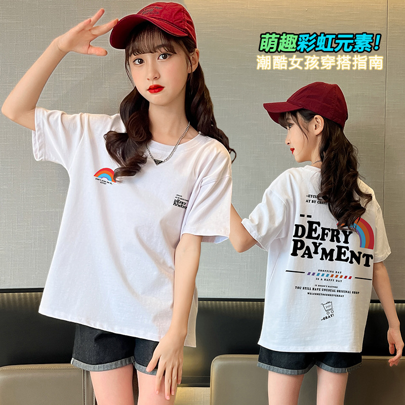 女童短袖t恤夏季新款休闲儿童装半袖上衣炸街中大童女孩夏装INS潮