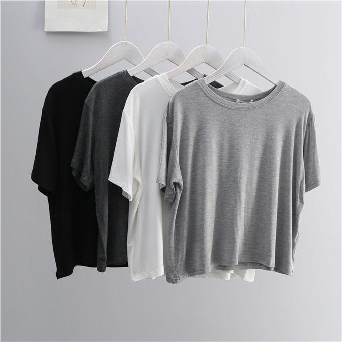超手感莫代尔纯色圆领短袖T恤女夏季短款半袖显瘦上衣学生休闲T恤