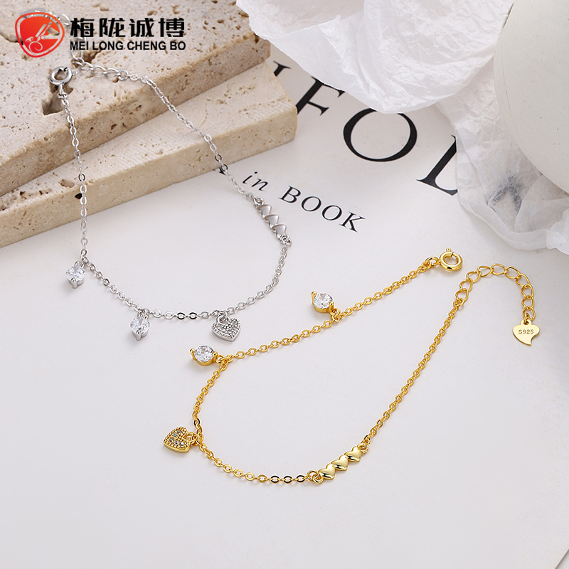 925纯银爱心锆石手链女新款甜美小清新心形手饰简约ins百搭手饰品