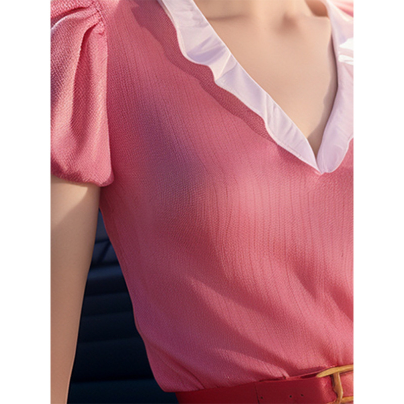 夏季洋气独特超好看别致绝美小衫气质上衣高级感粉色甜美V领上衣