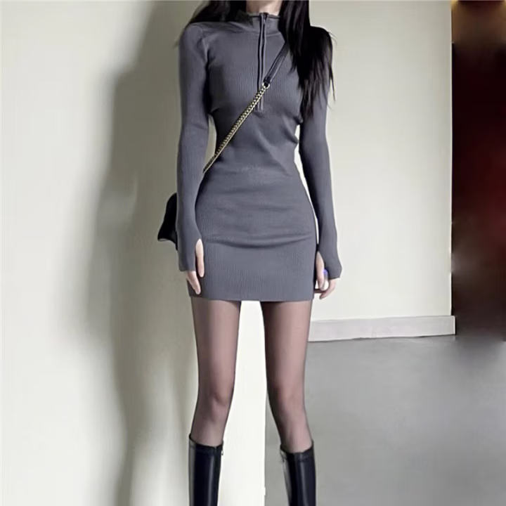 包臀连衣裙女2025春秋新款长袖针织内搭修身御姐高级感