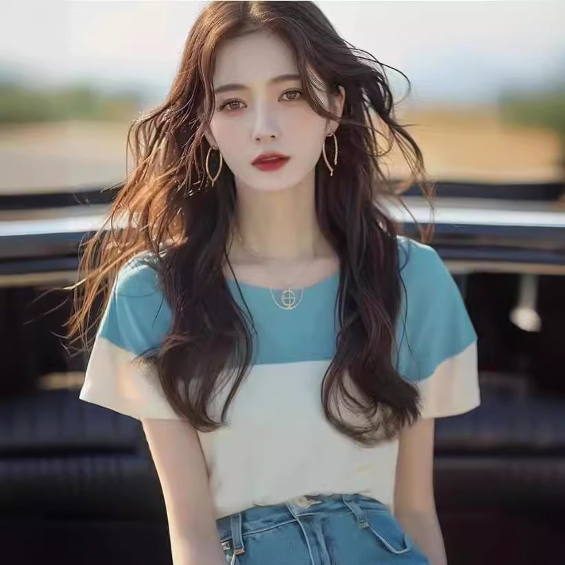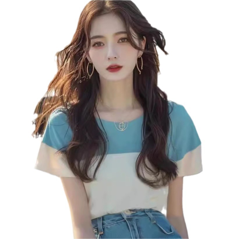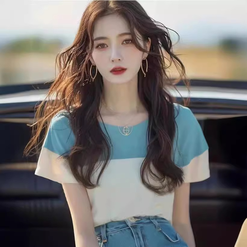 今年流行爆款独特别致衬衫上衣气质法式高级感撞色短袖t恤女夏款