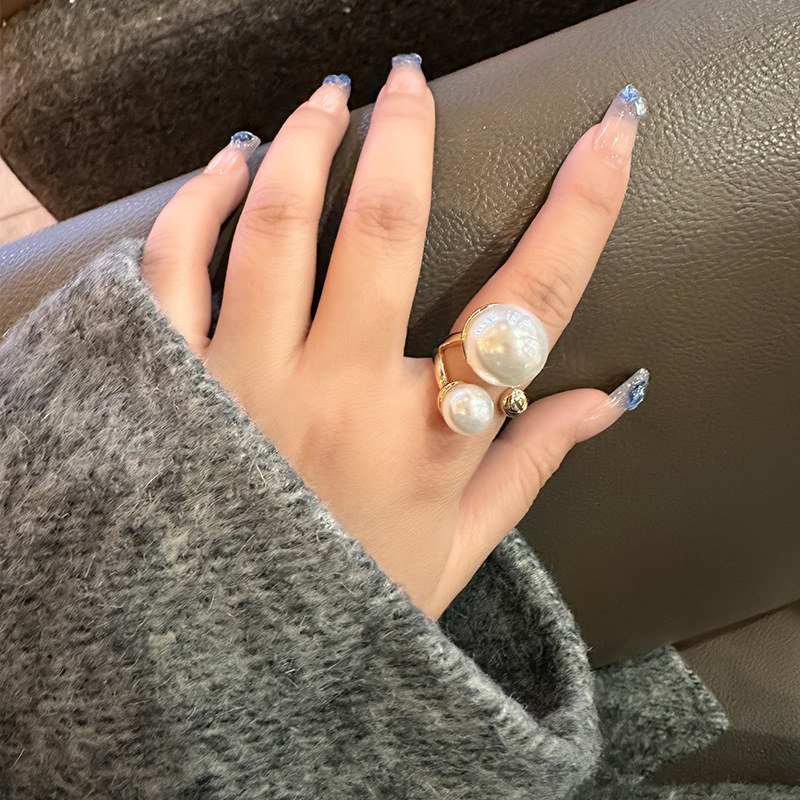 法式复古大小珍珠戒指气质小众设计感轻奢高级感简约大气食指指环
