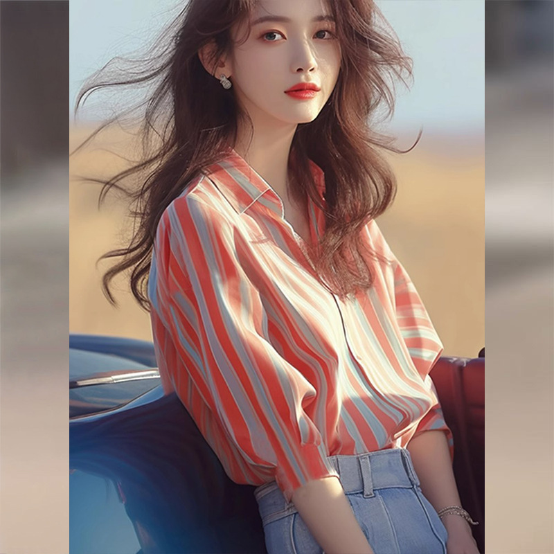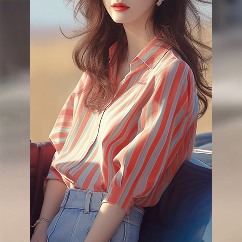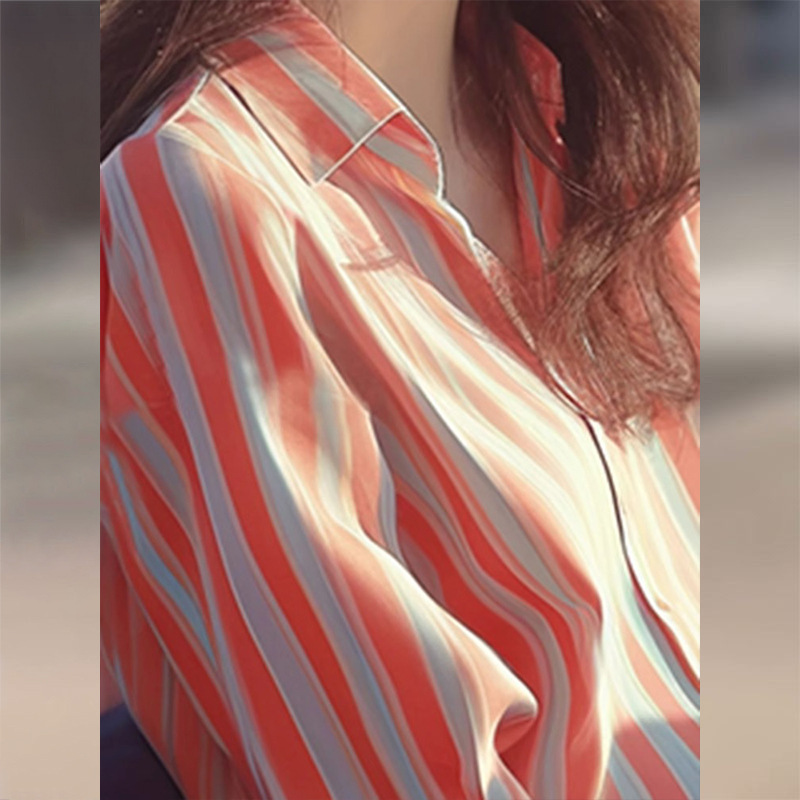 撞色条纹衬衫女夏款新款轻奢高级感法式小众独特别致半袖上衣