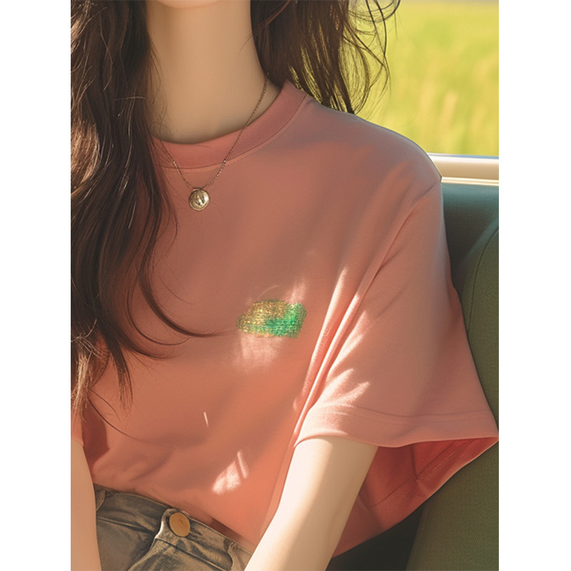 洋气独特超好看别致绝美漂亮多巴胺上衣橘粉色正肩短袖t恤女夏季