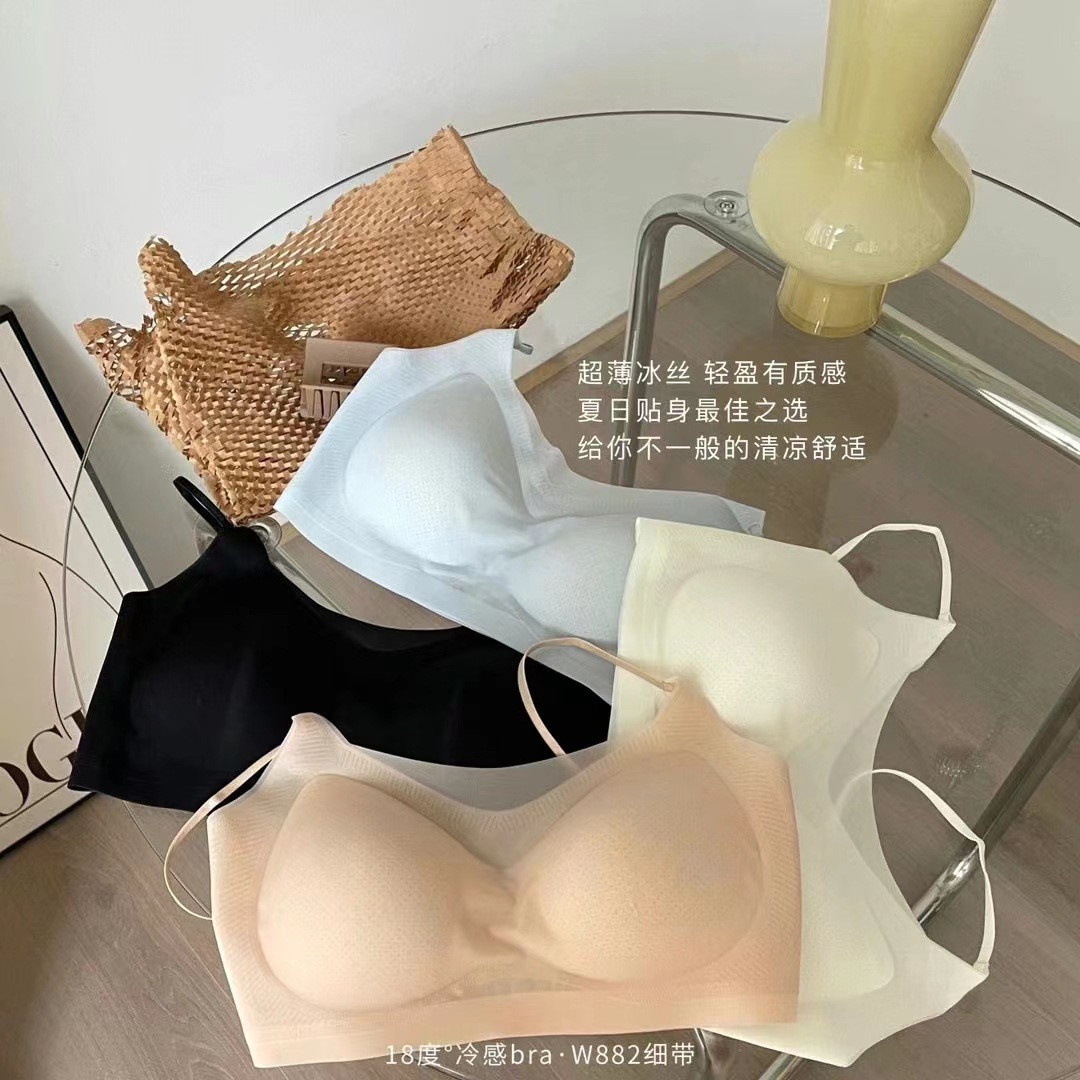 冰丝18度冷感bra夏季超薄透气裸感无痕无钢圈背心式内衣文胸罩