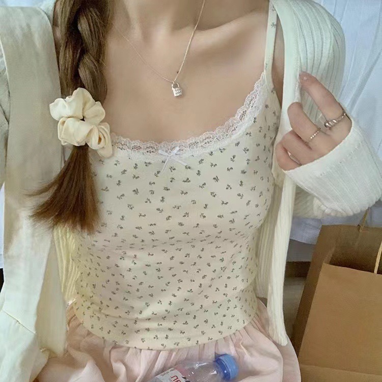 BM风碎花吊带背心女带胸垫一体式美背内搭外穿韩版纯欲人棉吊带