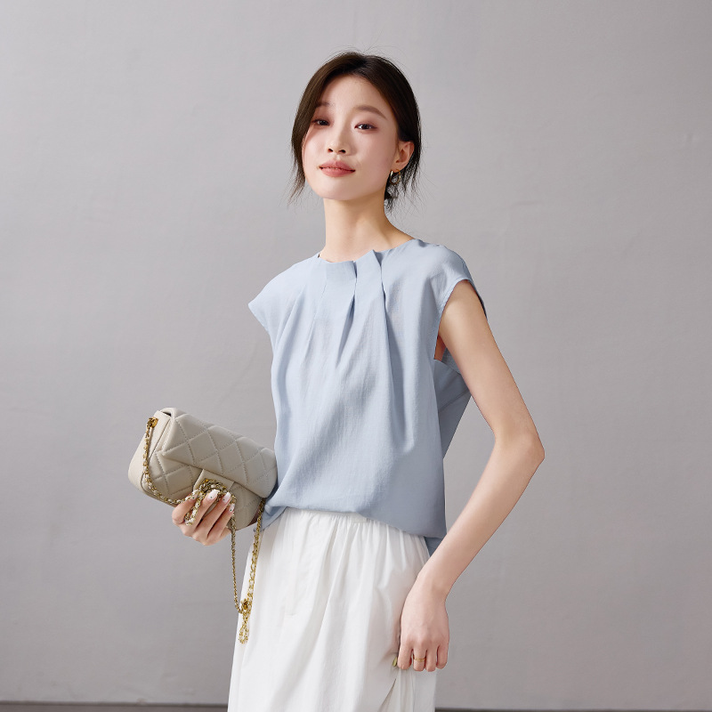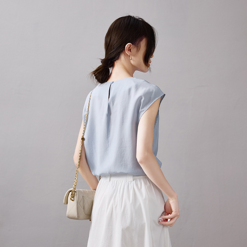 夏季新款气质宽松显瘦圆领无袖通勤百搭衬衫女薄衬衣
