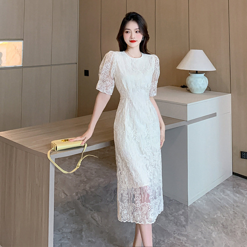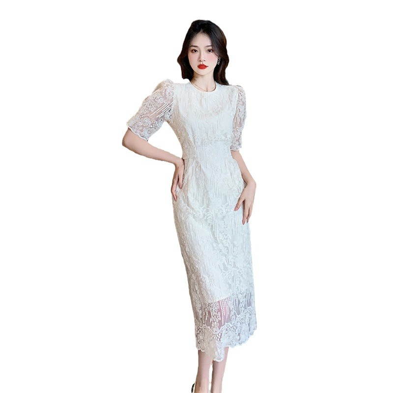 法式蕾丝连衣裙女春夏季新款泡泡袖设计感时尚气质中长款裙子