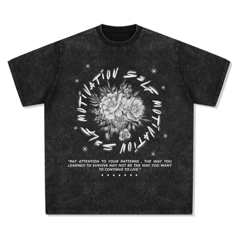 复古花朵数码印花美式百搭短袖t恤vintage重磅纯棉宽松潮男女上衣