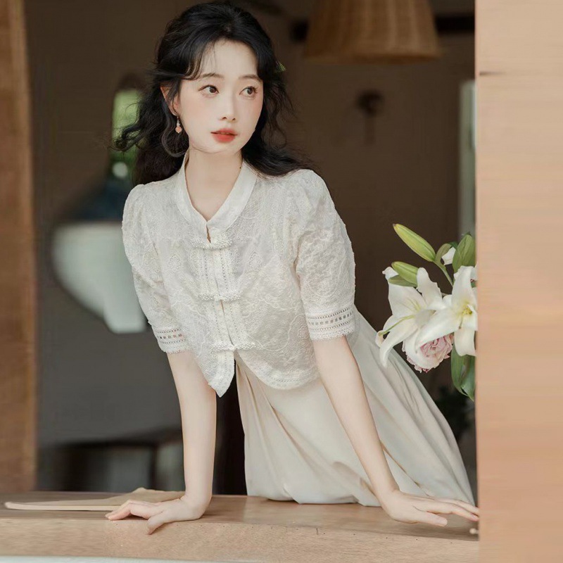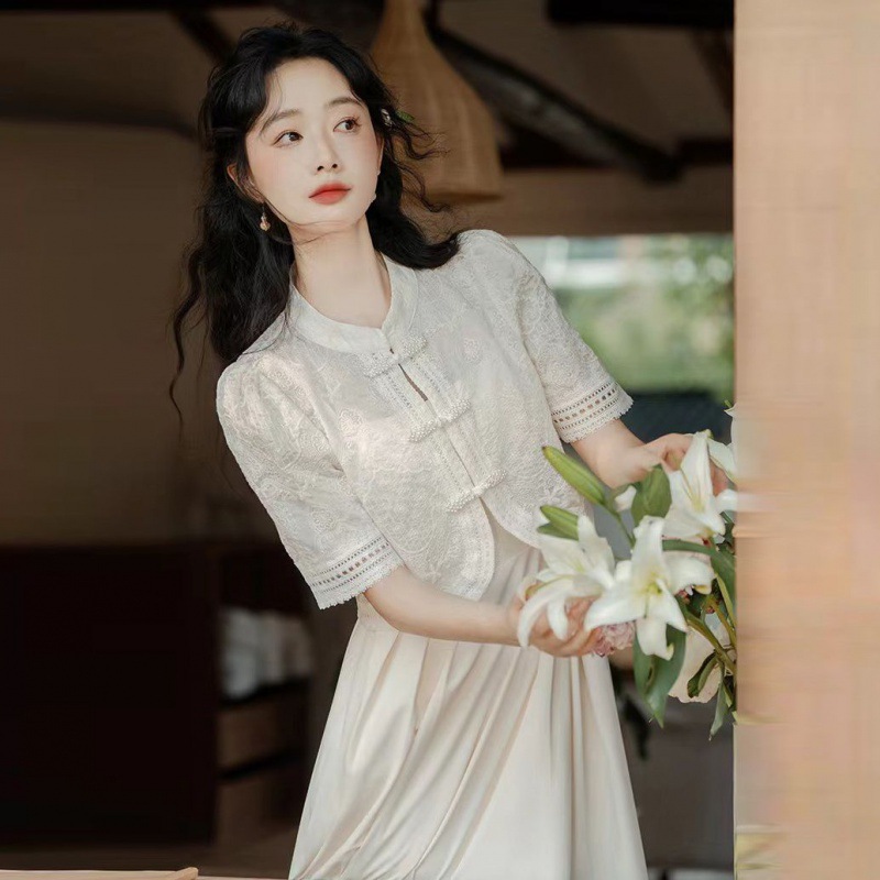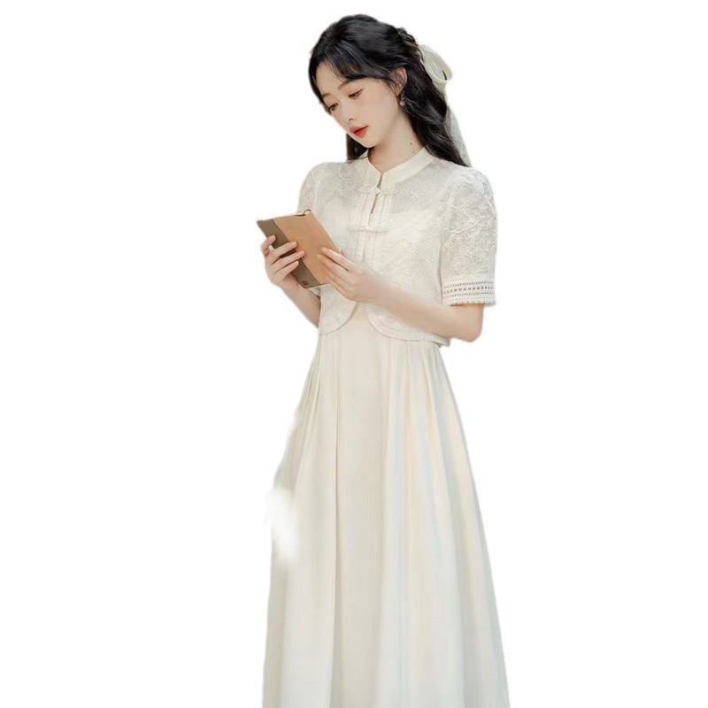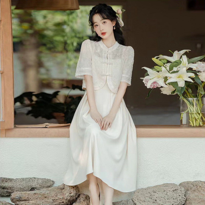 新中式国风盘扣上衣连衣裙两件套女夏季新款改良版旗袍套装裙
