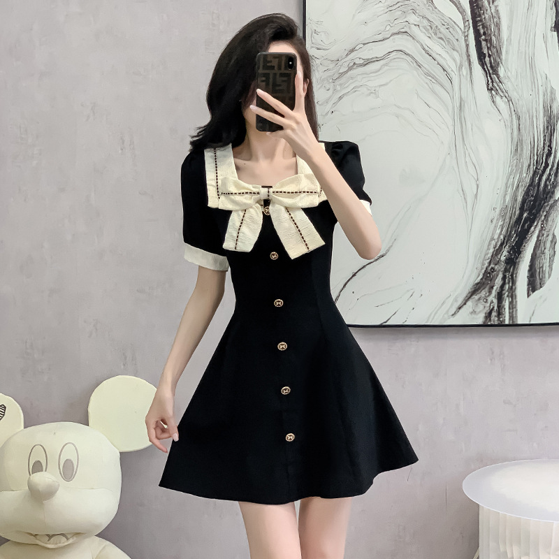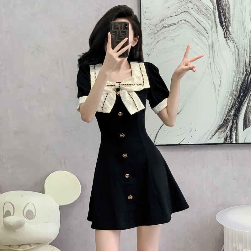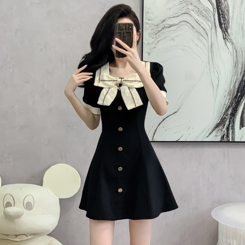 大码微胖女生法式蝴蝶结显瘦连衣裙女小众设计感胖mm梨型身材裙子
