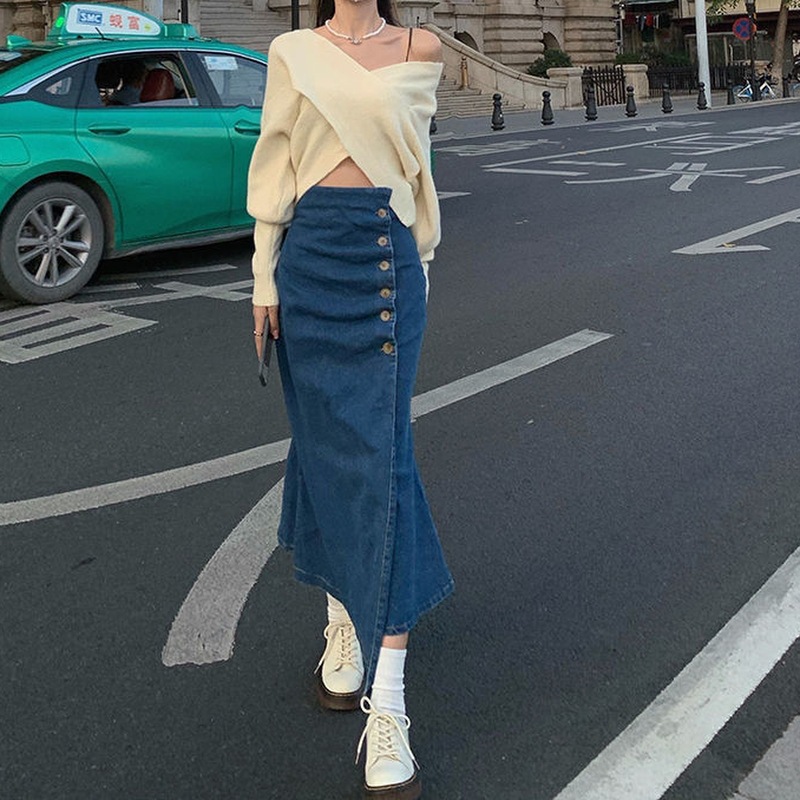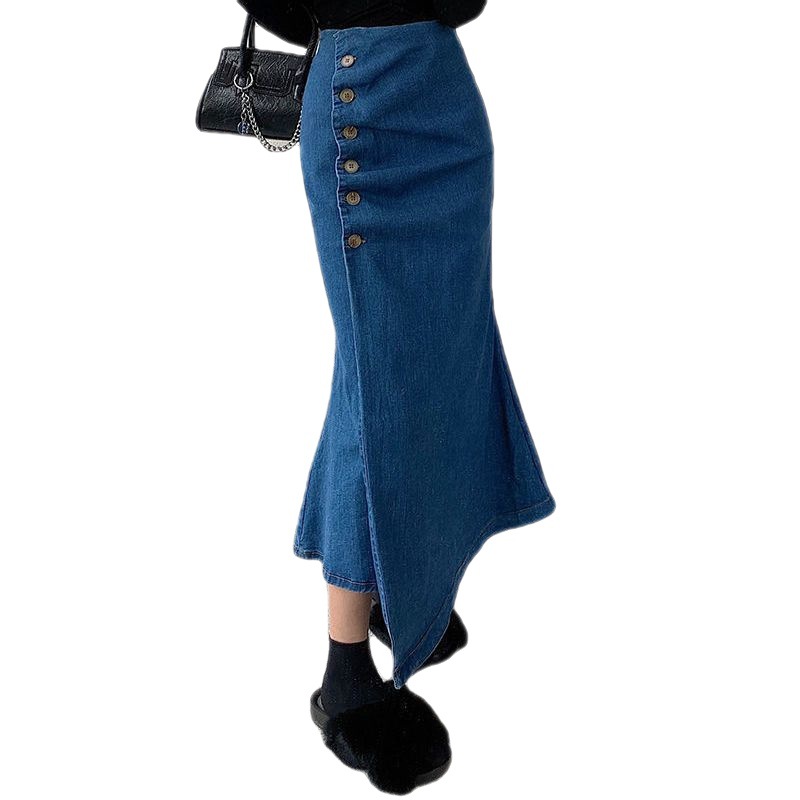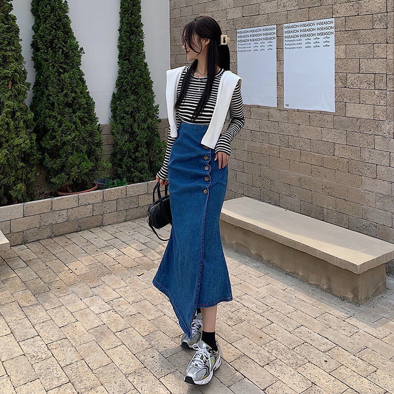 多巴胺女孩搭穿鱼尾裙胖妹开叉半身裙夏天女薄款裙子