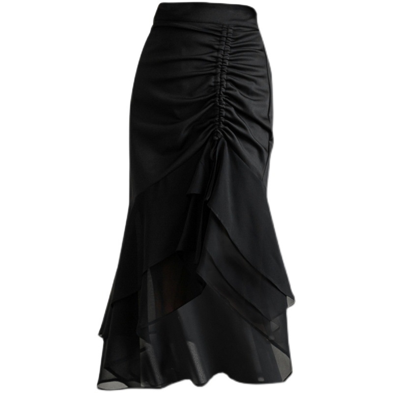不规则半身裙女春夏年新款中长款高腰气质黑色抽绳鱼尾包臀裙