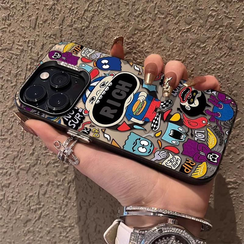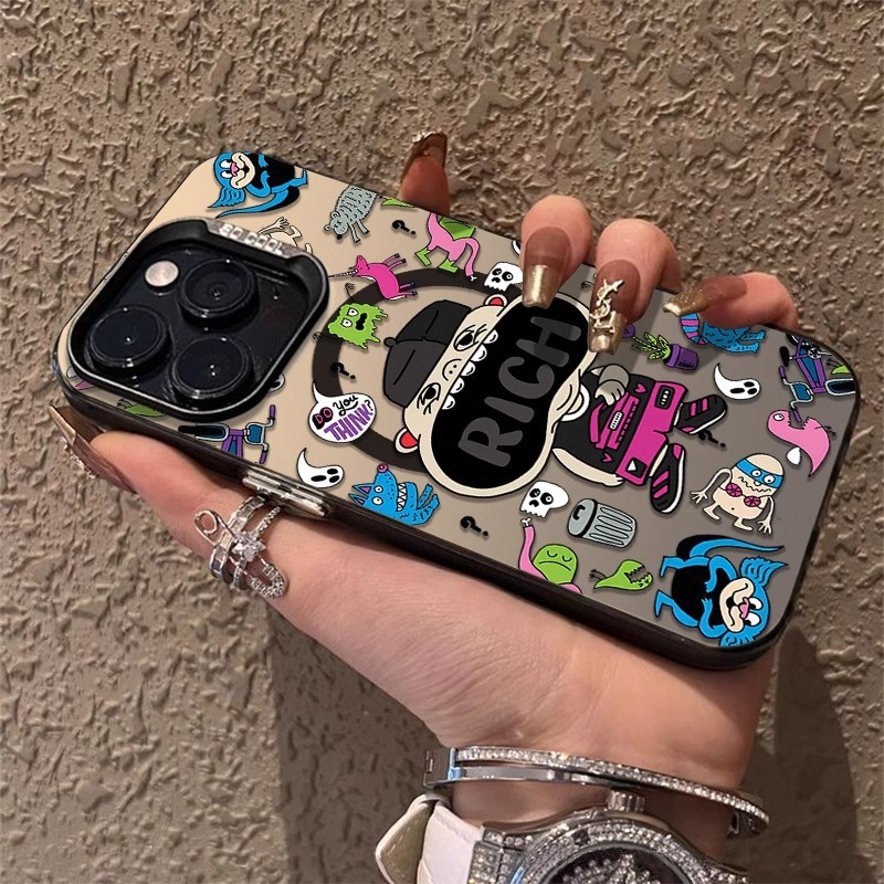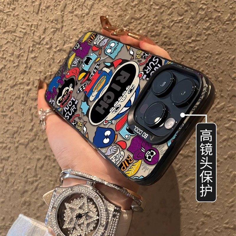 - _黑色【彩银磁吸壳】RlCH潮牌涂鸦