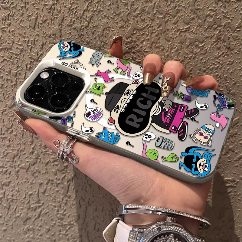 - 银白色【彩银磁吸壳】RlCH潮牌涂鸦
