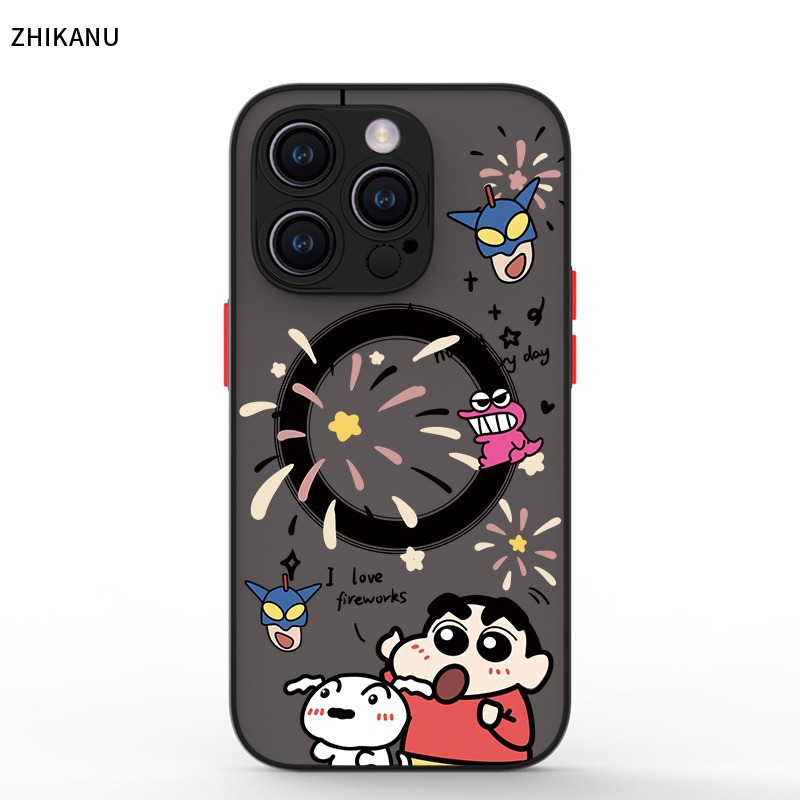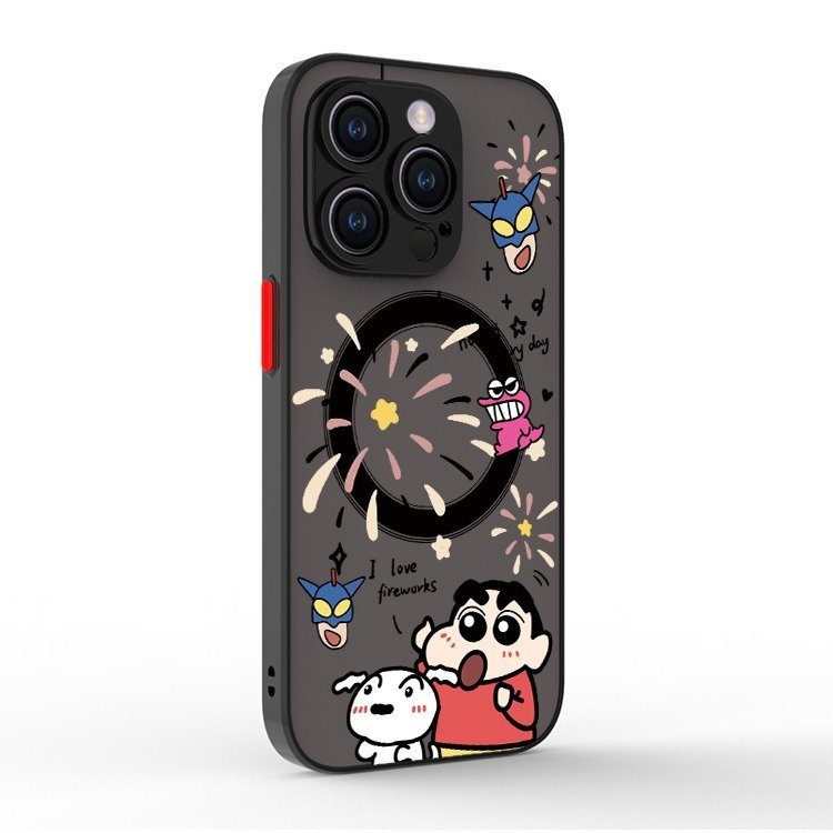 适用苹果16promax手机壳15新款iPhone14烟花蜡笔小新13创意12磁吸