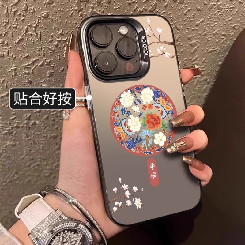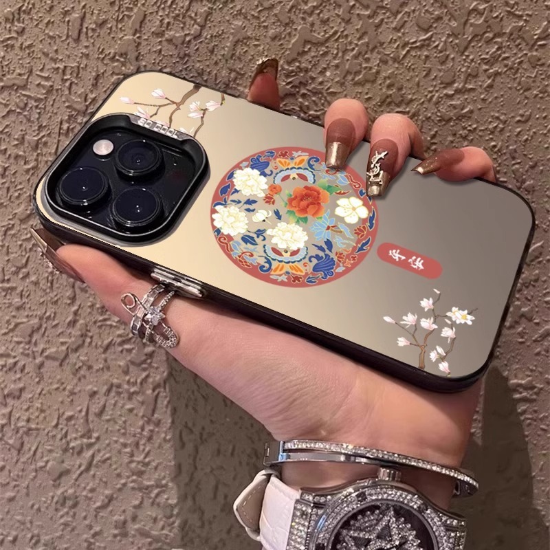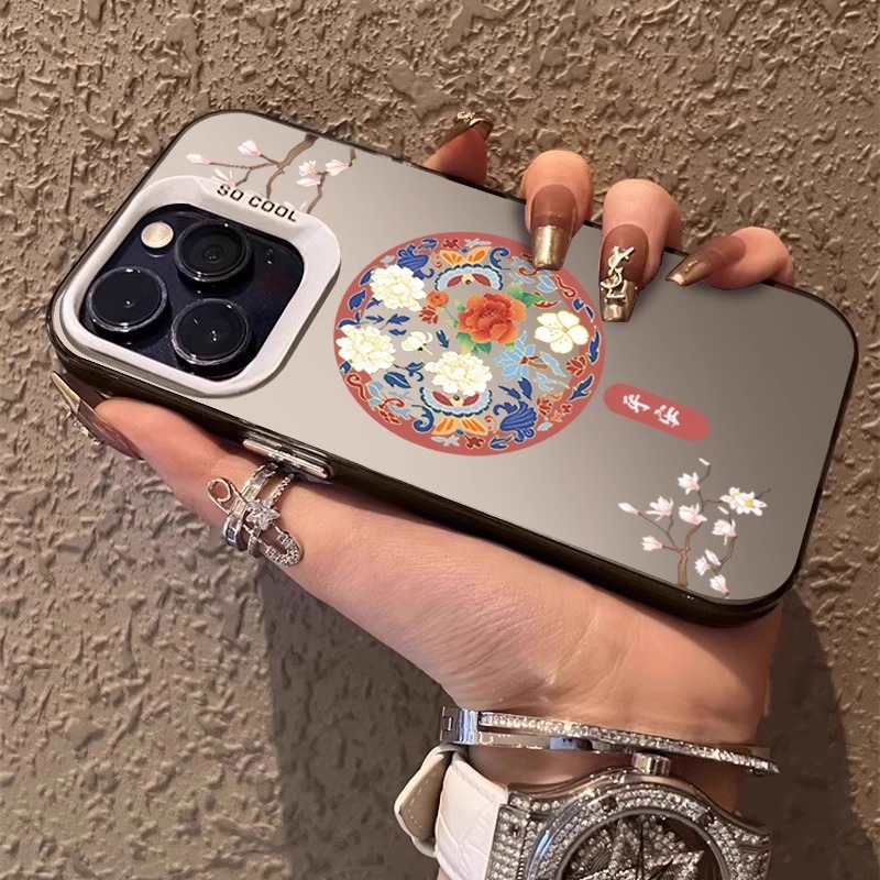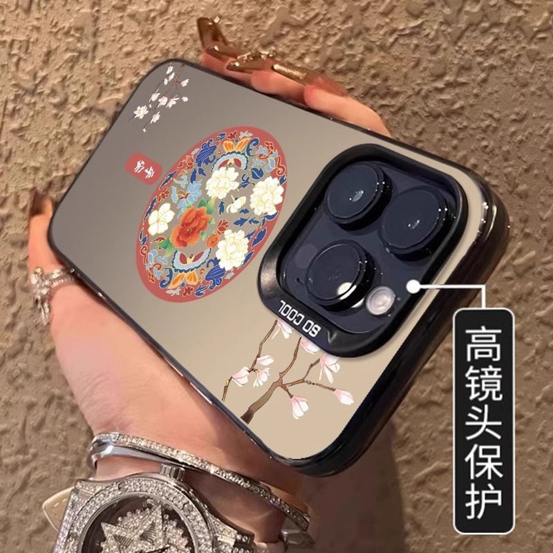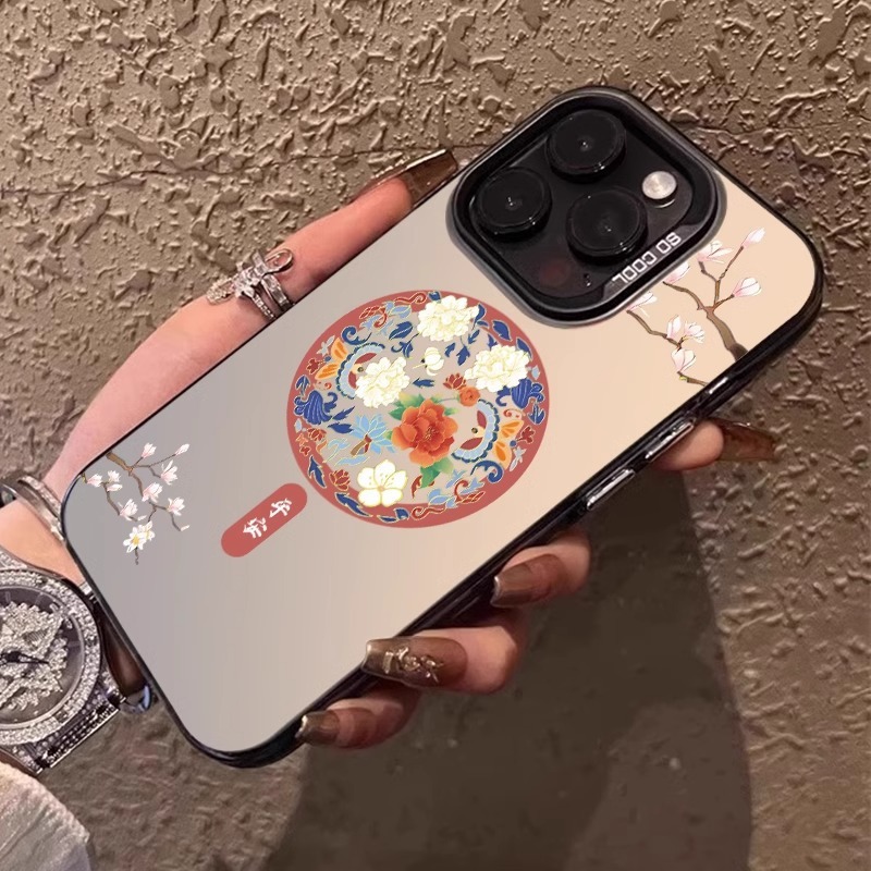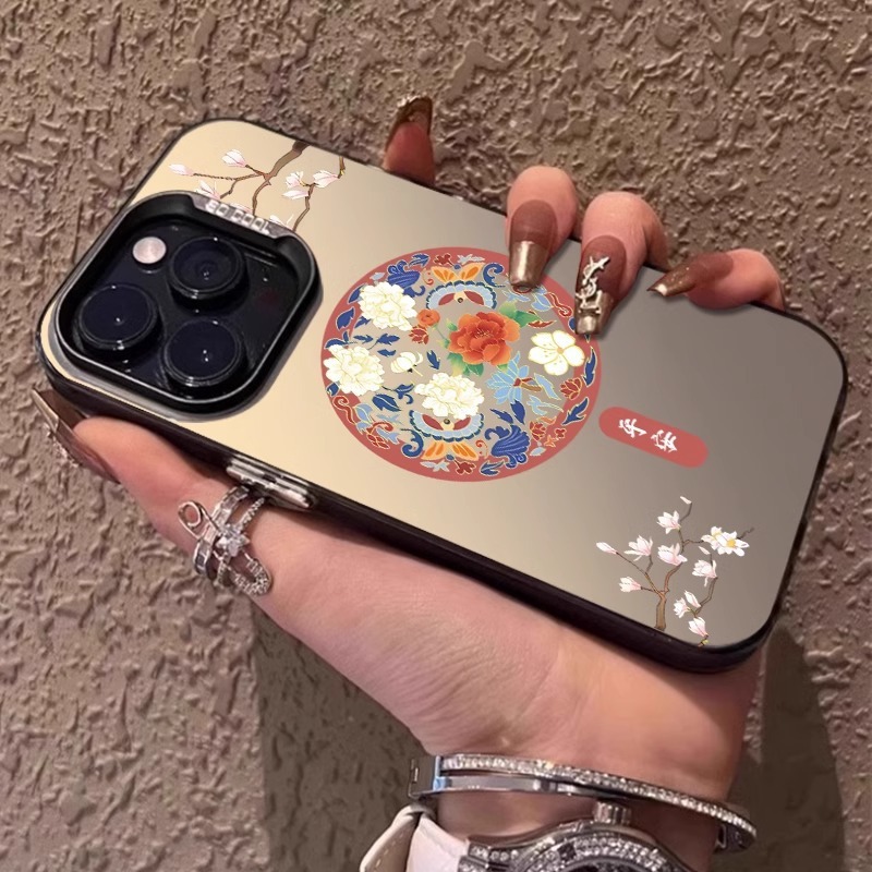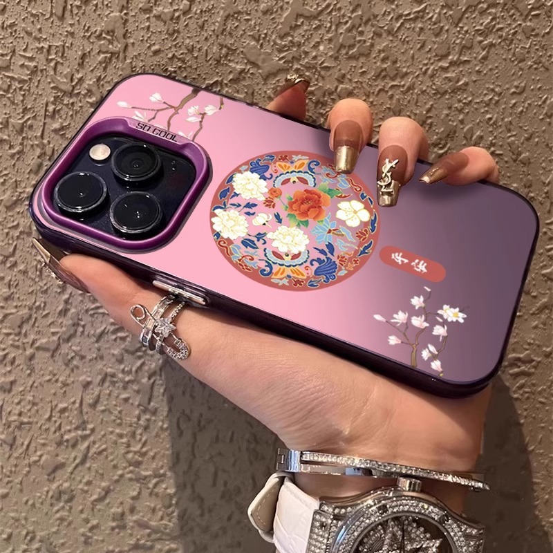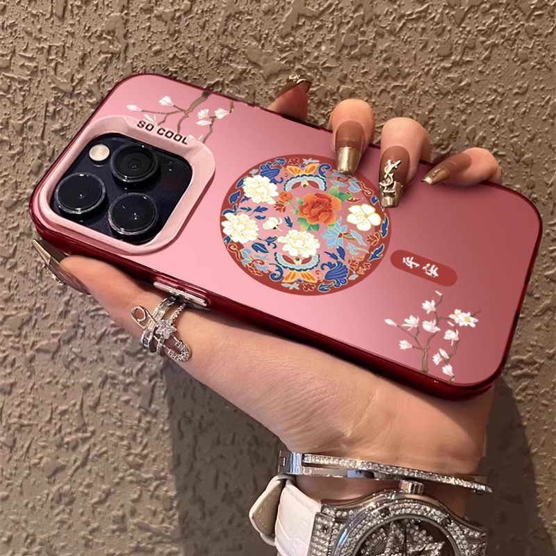 适用苹果16promax手机壳15新款iPhone14古风花朵13创意8磁吸12/11