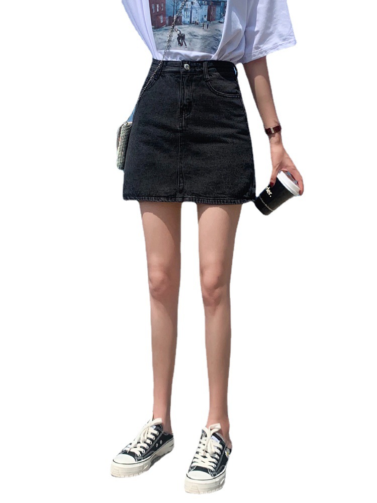 小个子黑色牛仔裙女春秋新款显瘦短裙A字ins高腰裙包臀半身裙