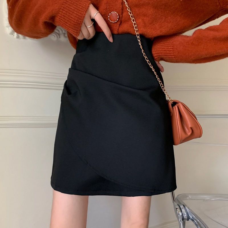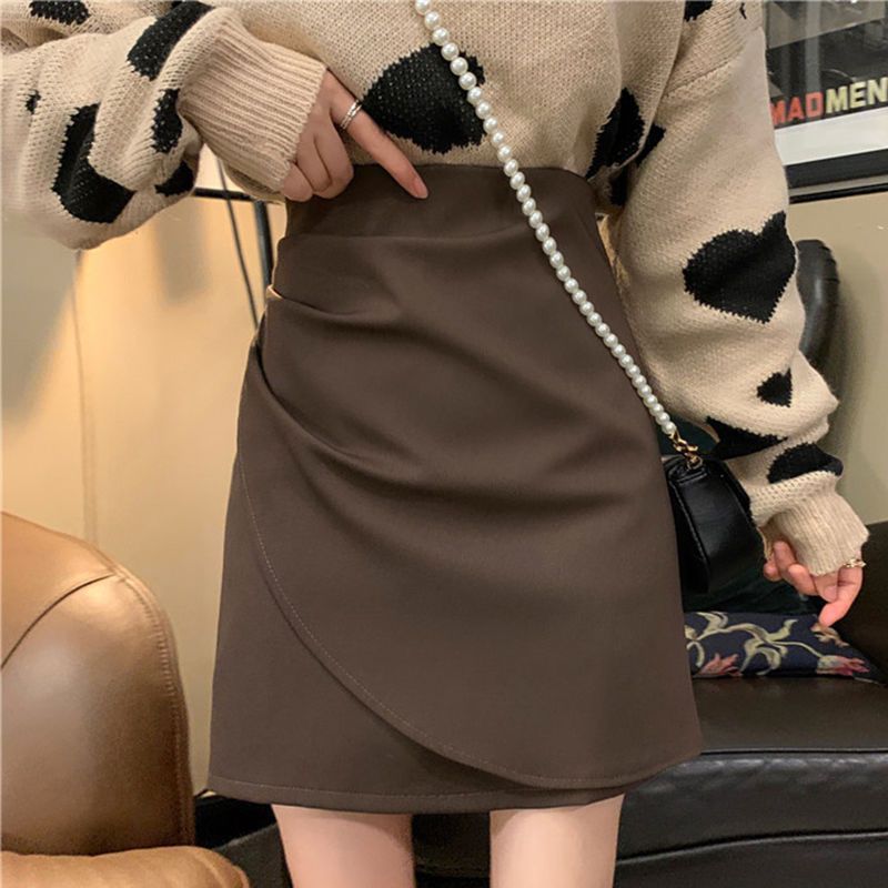 咖色短裙春秋新款设计感不规则包臀裙大码胖MM高腰显瘦遮肚a字裙