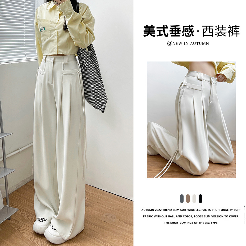 美式西装裤女装春季女新款垂感直筒休闲裤高腰显瘦拖地阔腿裤