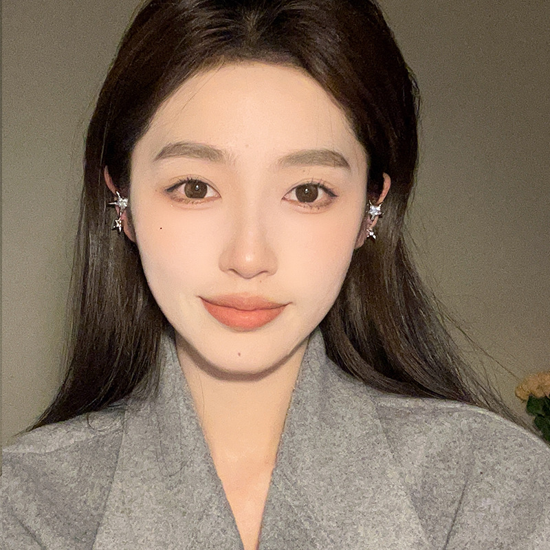 气质闪钻锆石星星耳夹小众设计感高级感无耳洞耳骨夹星芒流苏耳饰