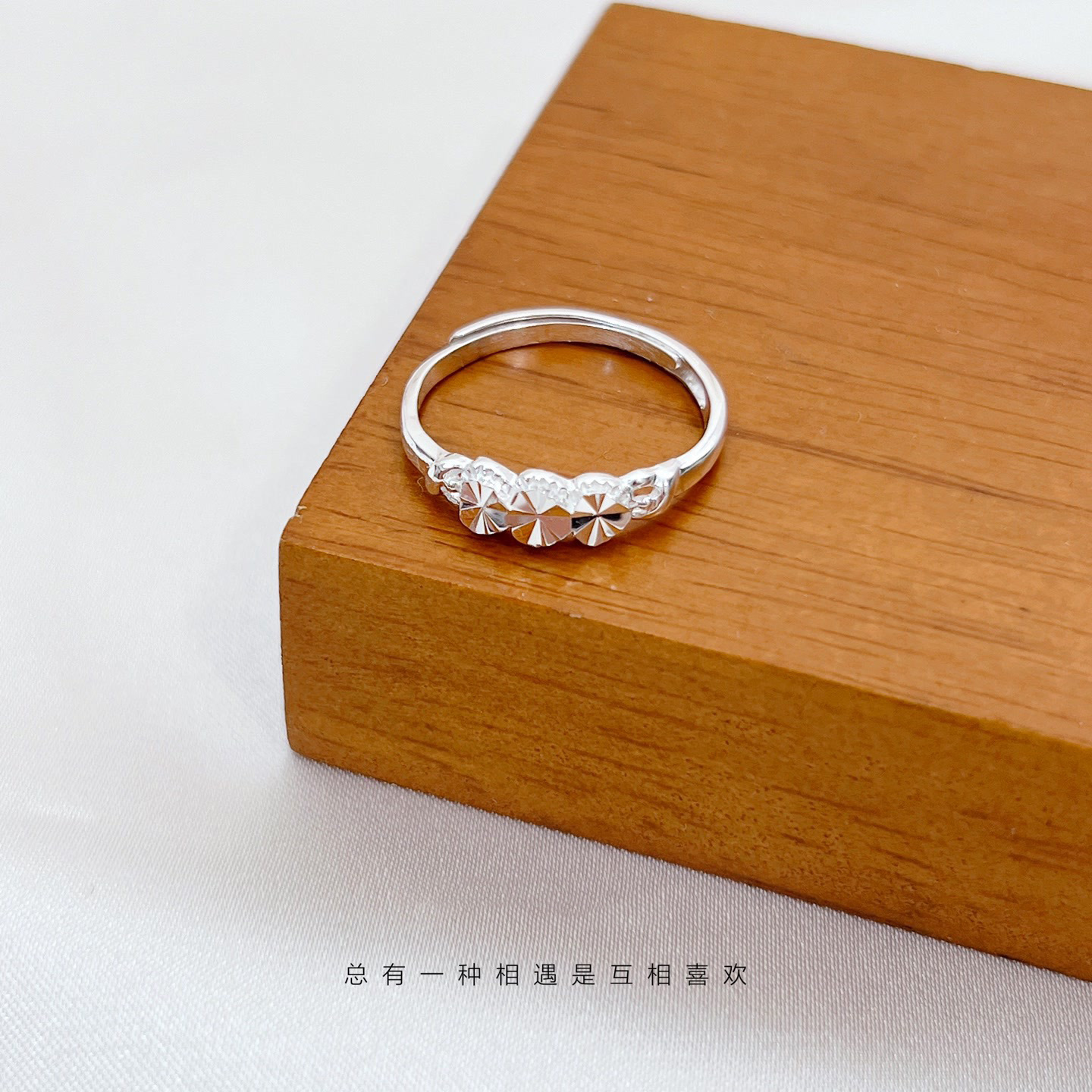 S990纯银心连心戒指女欧美时尚轻奢车花心形甜美开口可调节食指环