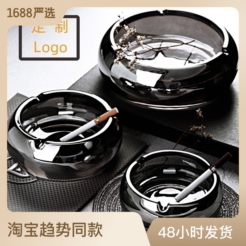 创意圆形玻璃烟灰缸三卡槽烟灰碟客厅摆件灭烟器防飞灰烟灰缸