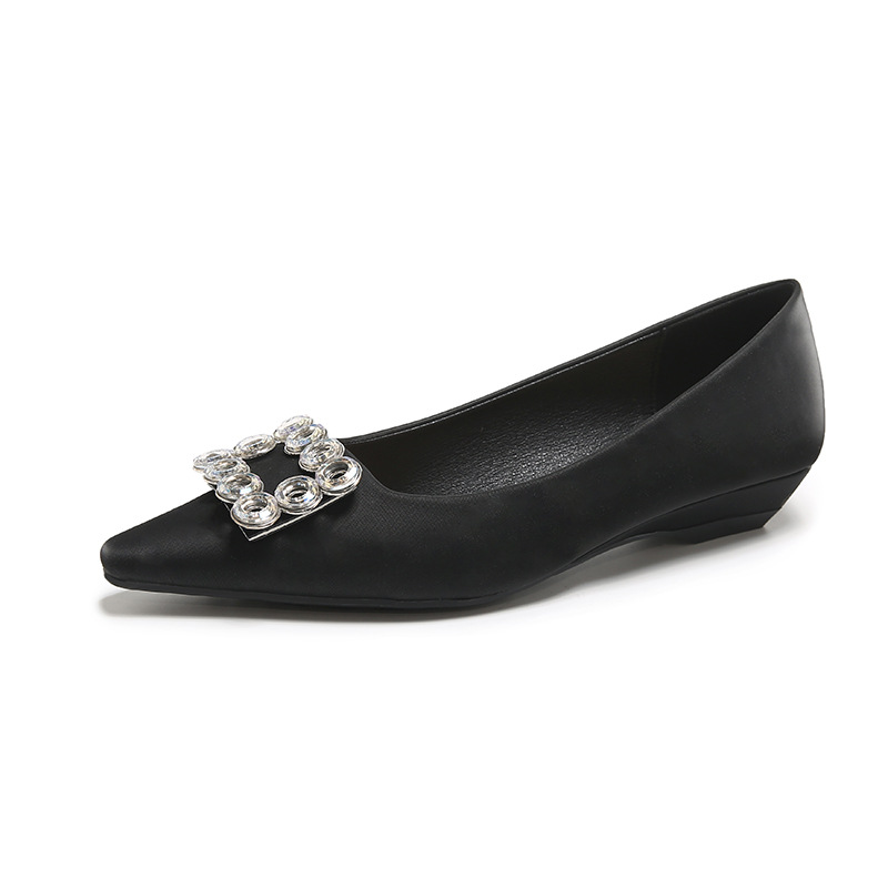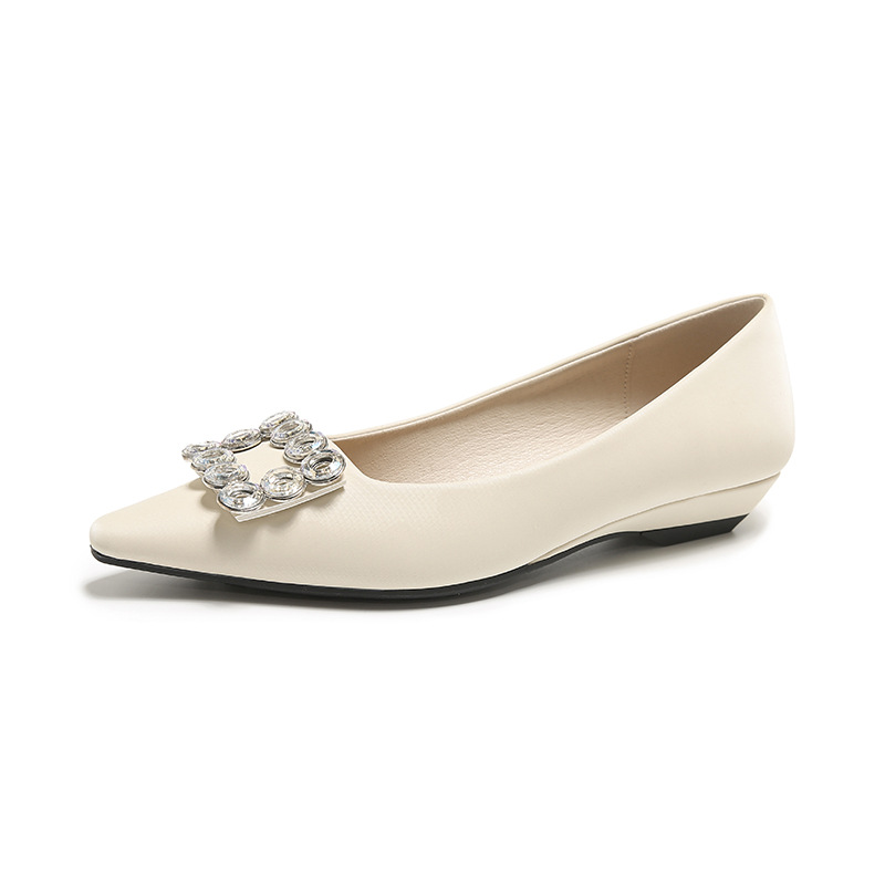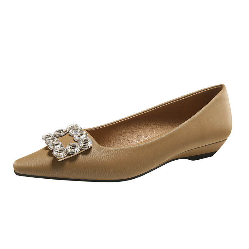 年新款小矮跟单鞋女法式轻奢裸色水钻浅口方扣女鞋通勤不累脚