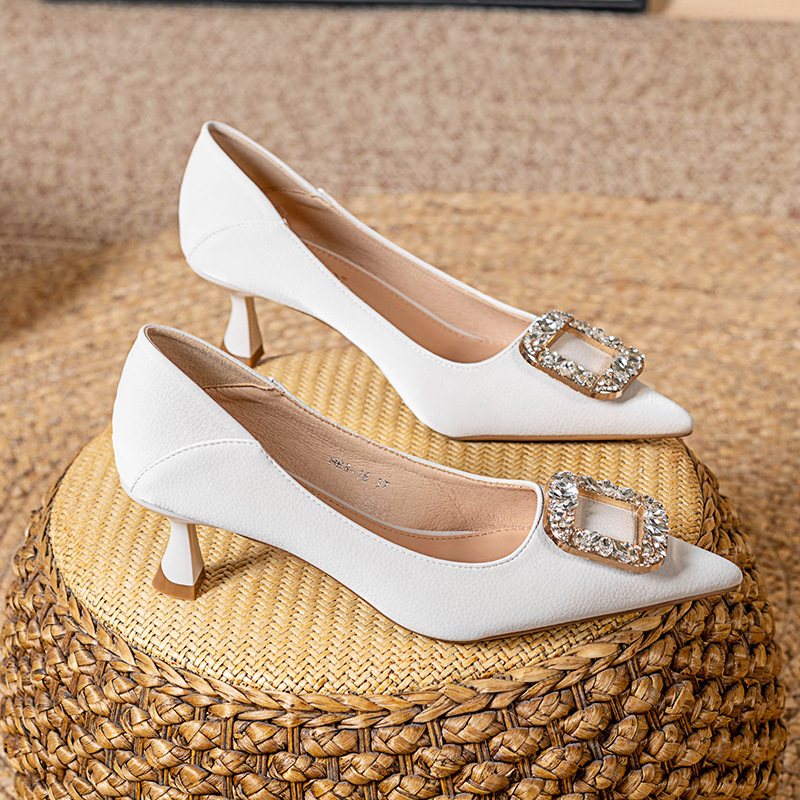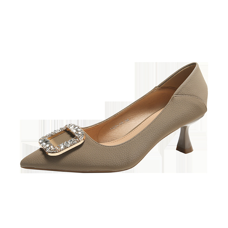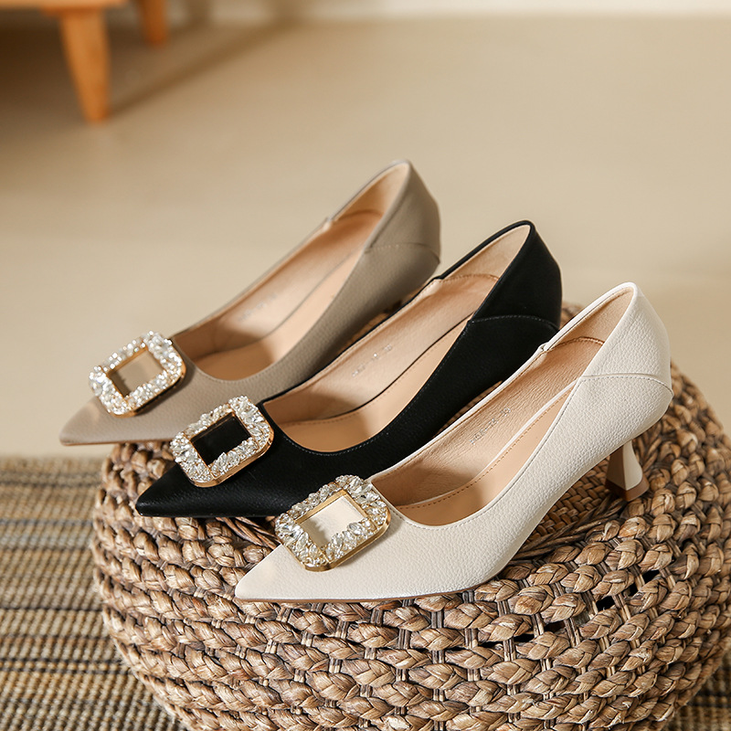 软皮浅口性感单鞋新款细跟女鞋尖头秋季高跟鞋女气质黑色百搭