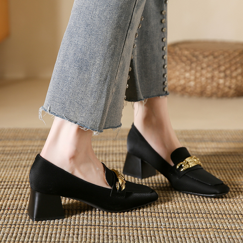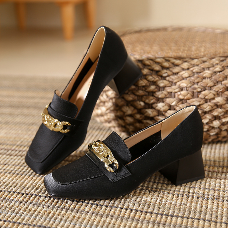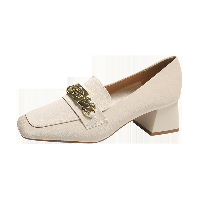 一脚蹬高跟小皮鞋年秋季新款方头乐福鞋复古时尚百搭单鞋女