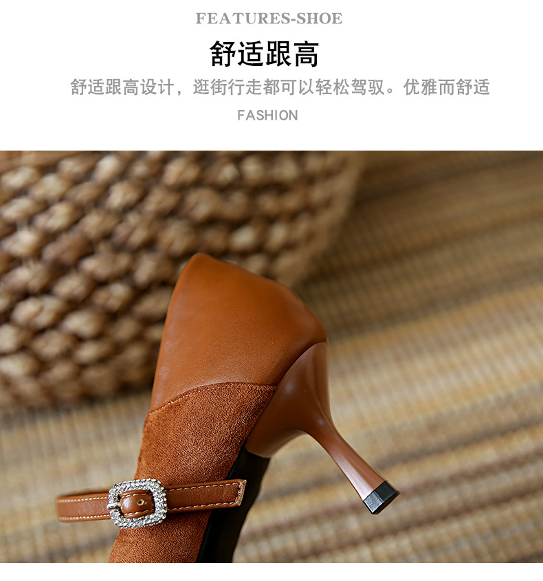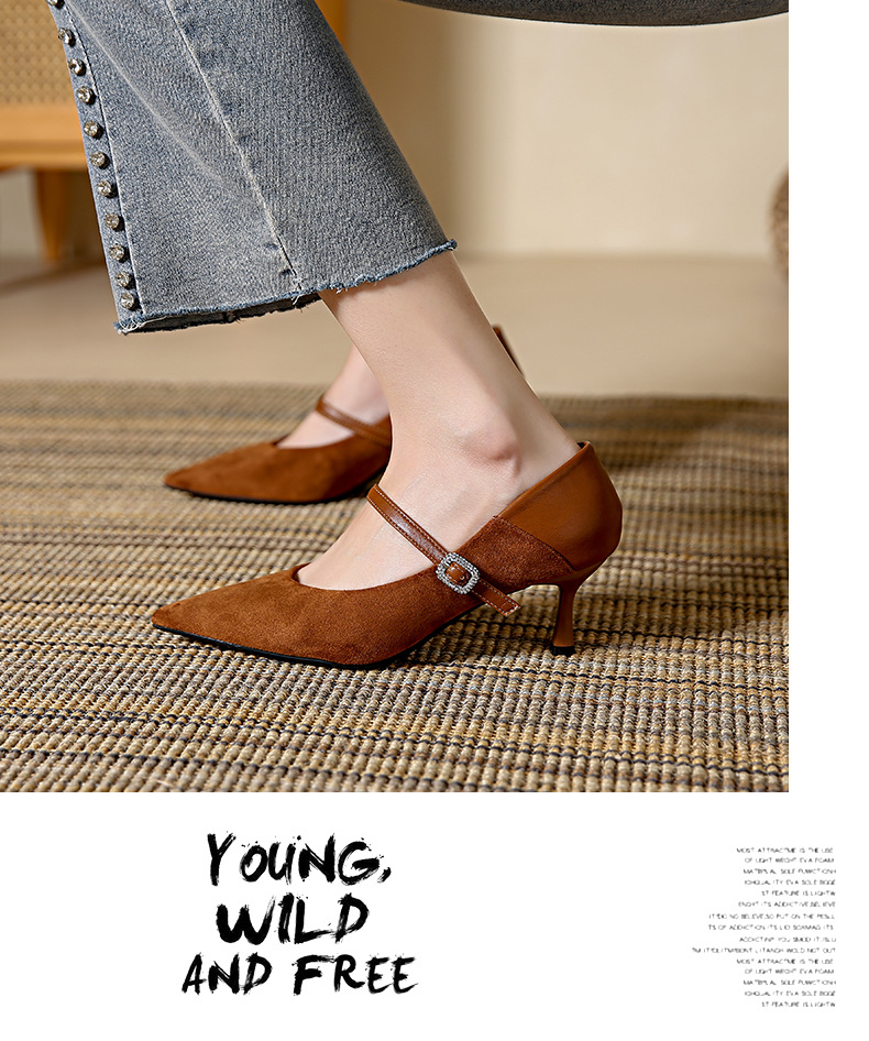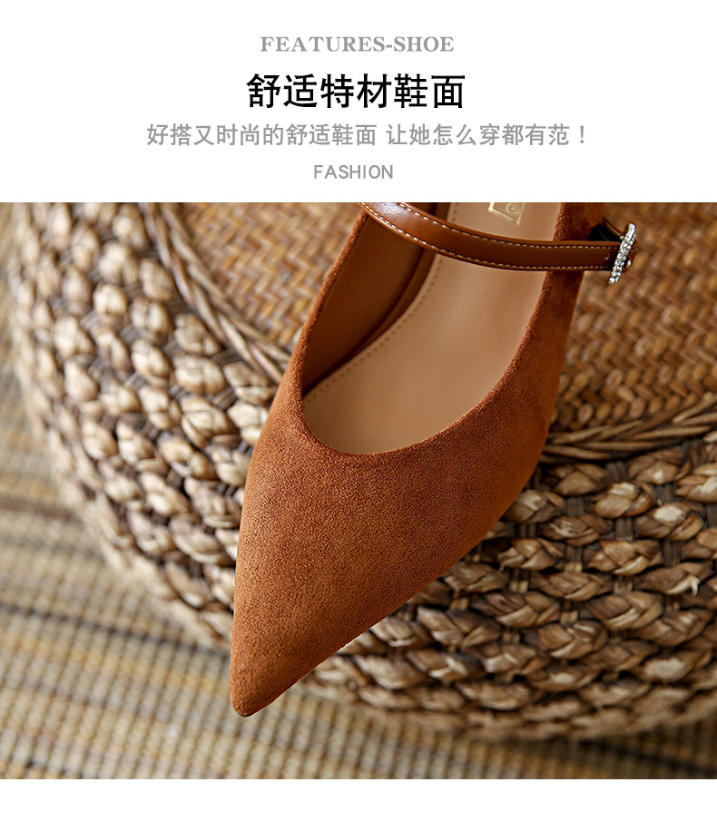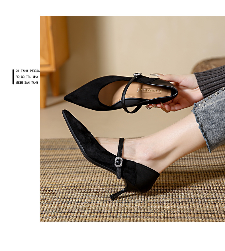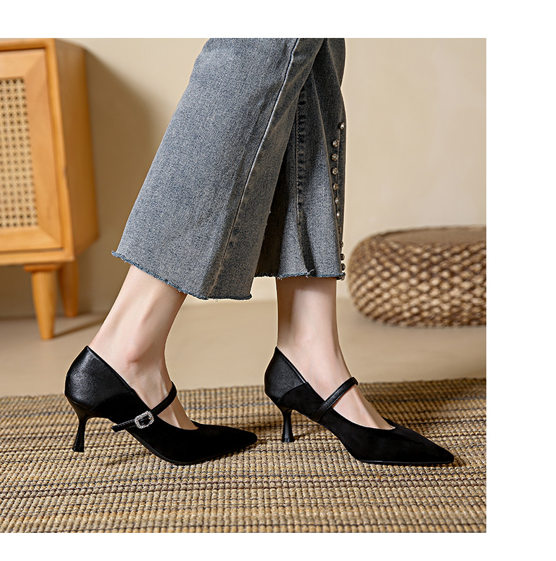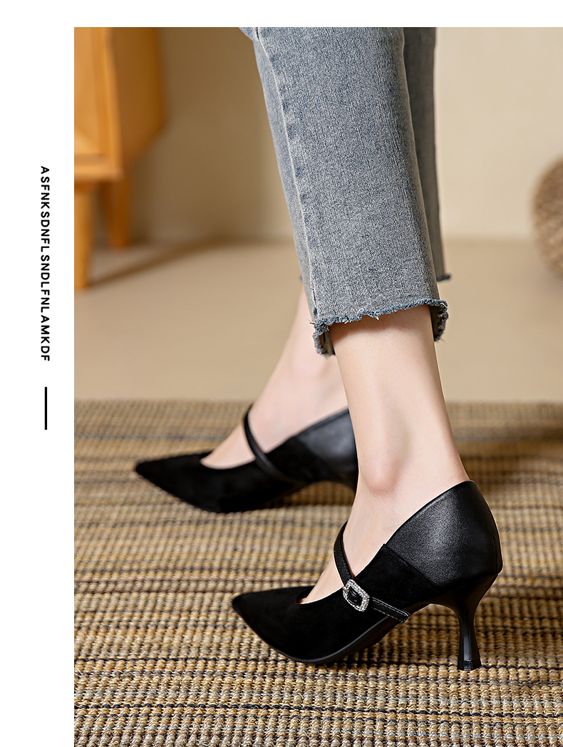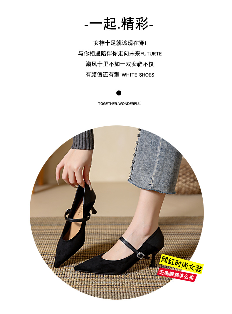 性感尖头细跟高跟鞋女 秋季新款一字带扣女鞋配裙子浅口单鞋