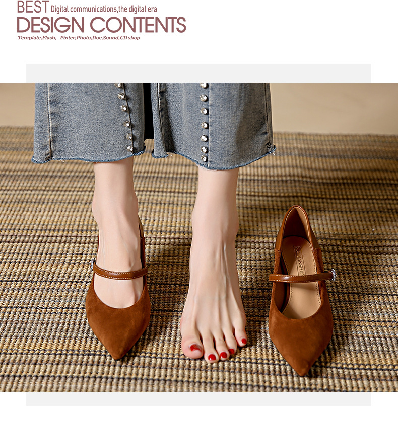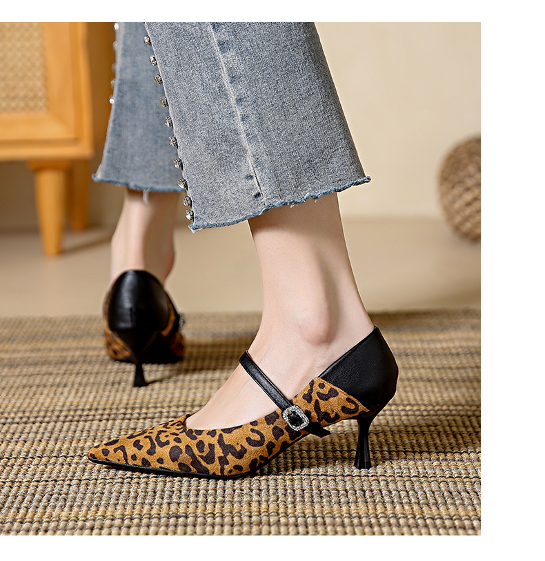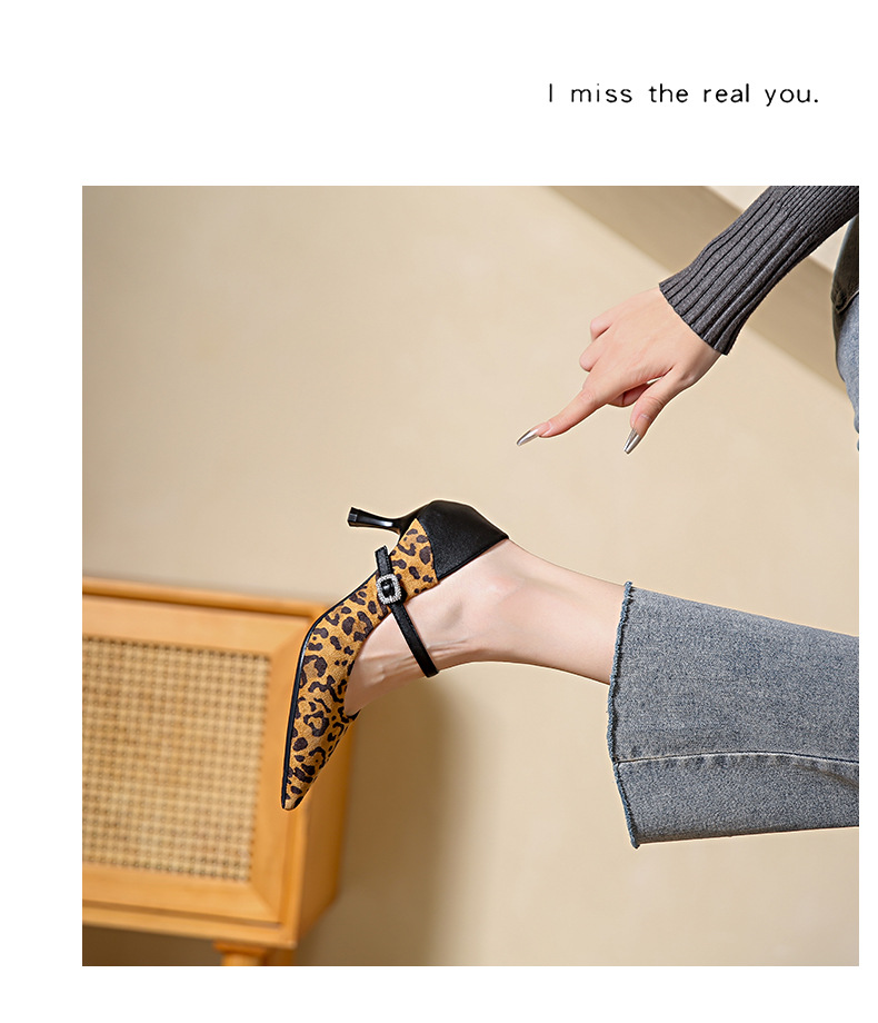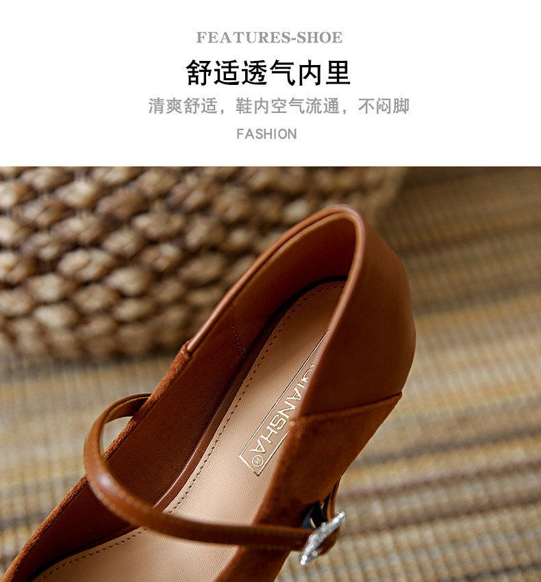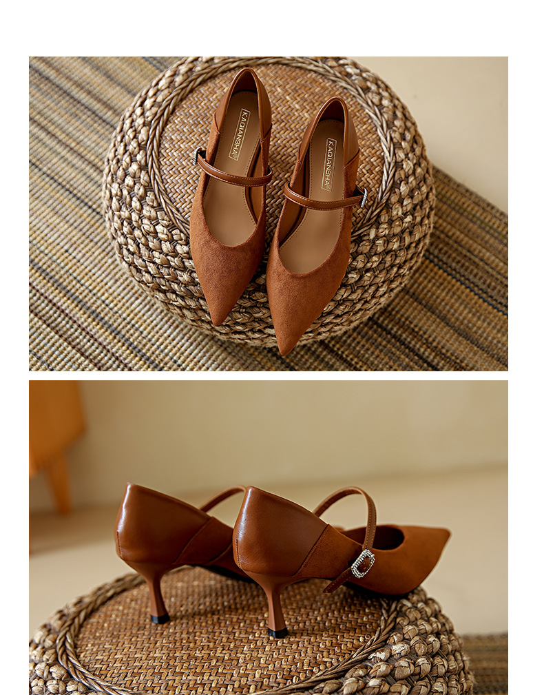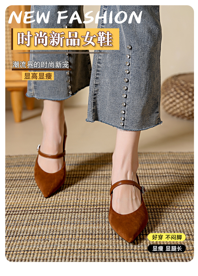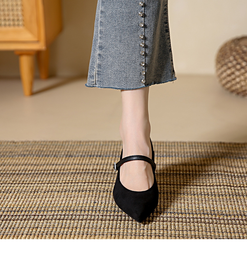 性感尖头细跟高跟鞋女 秋季新款一字带扣女鞋配裙子浅口单鞋