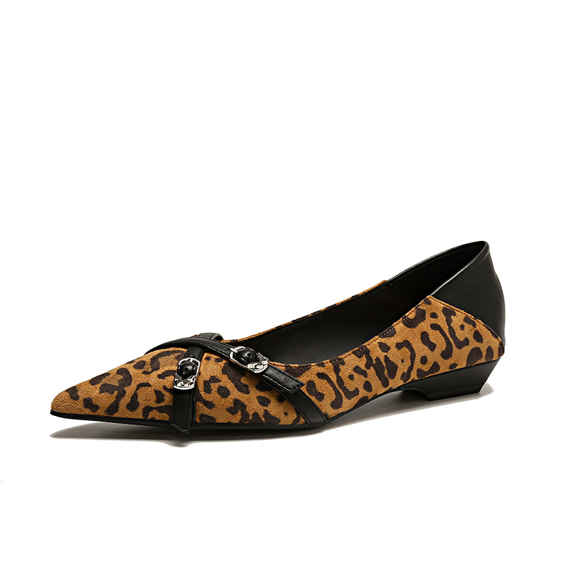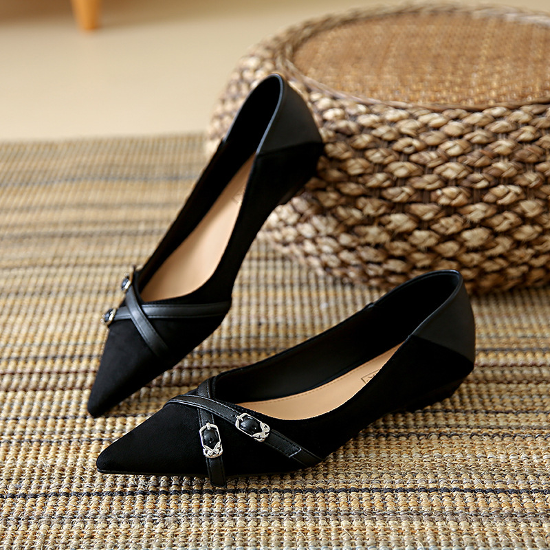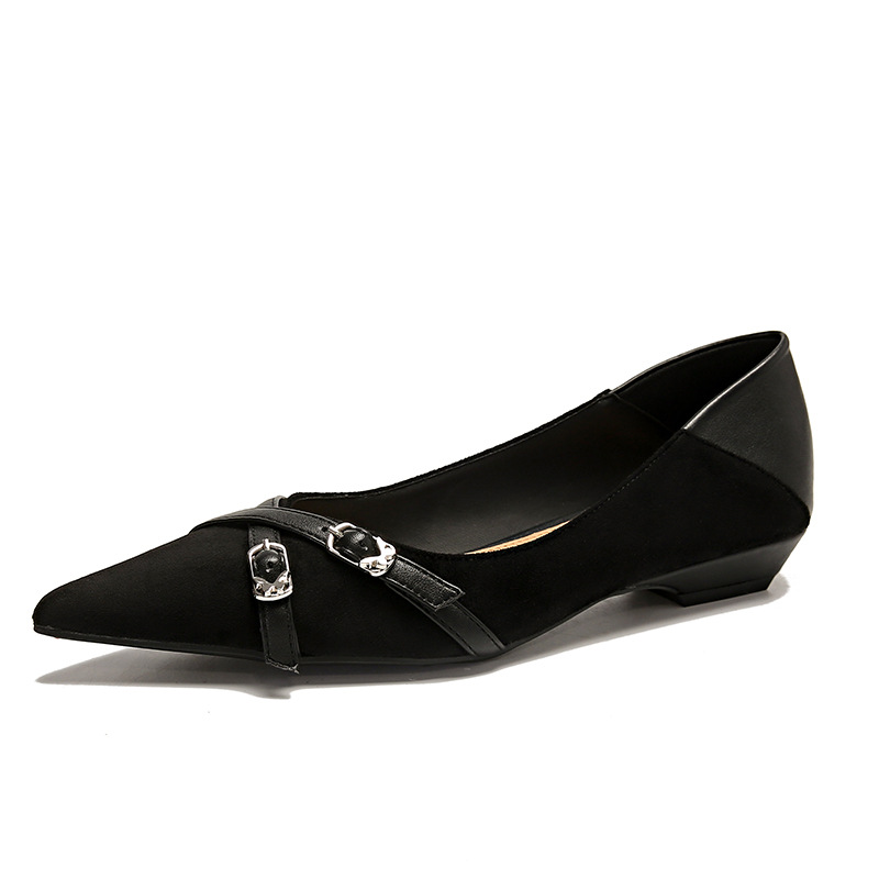 尖头单鞋女秋软底低跟单鞋 皮带扣浅口时尚韩版细跟低跟女单鞋