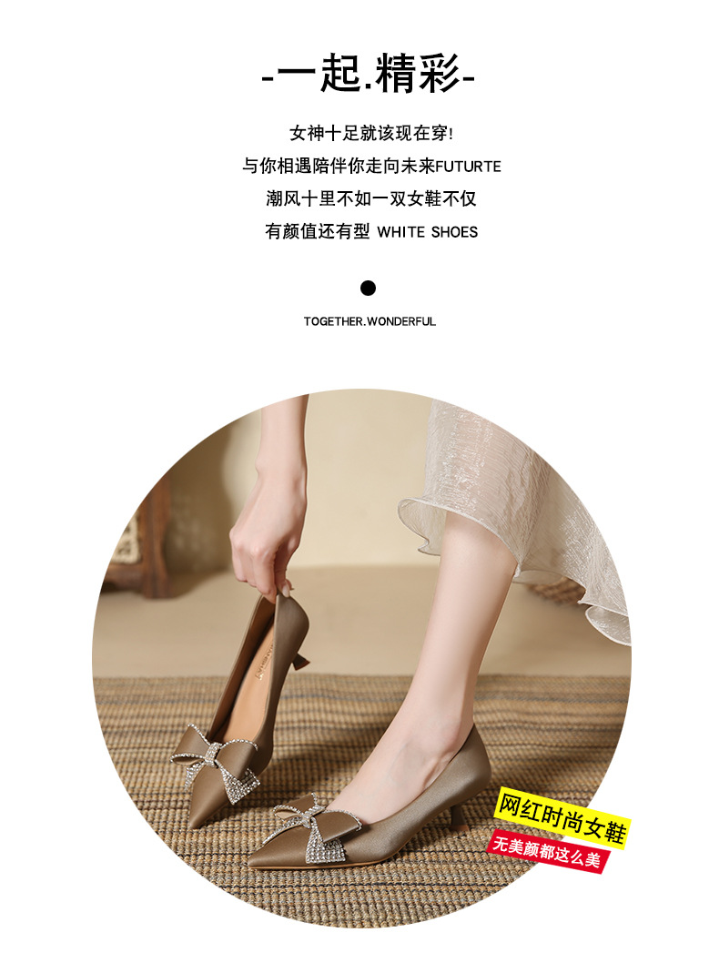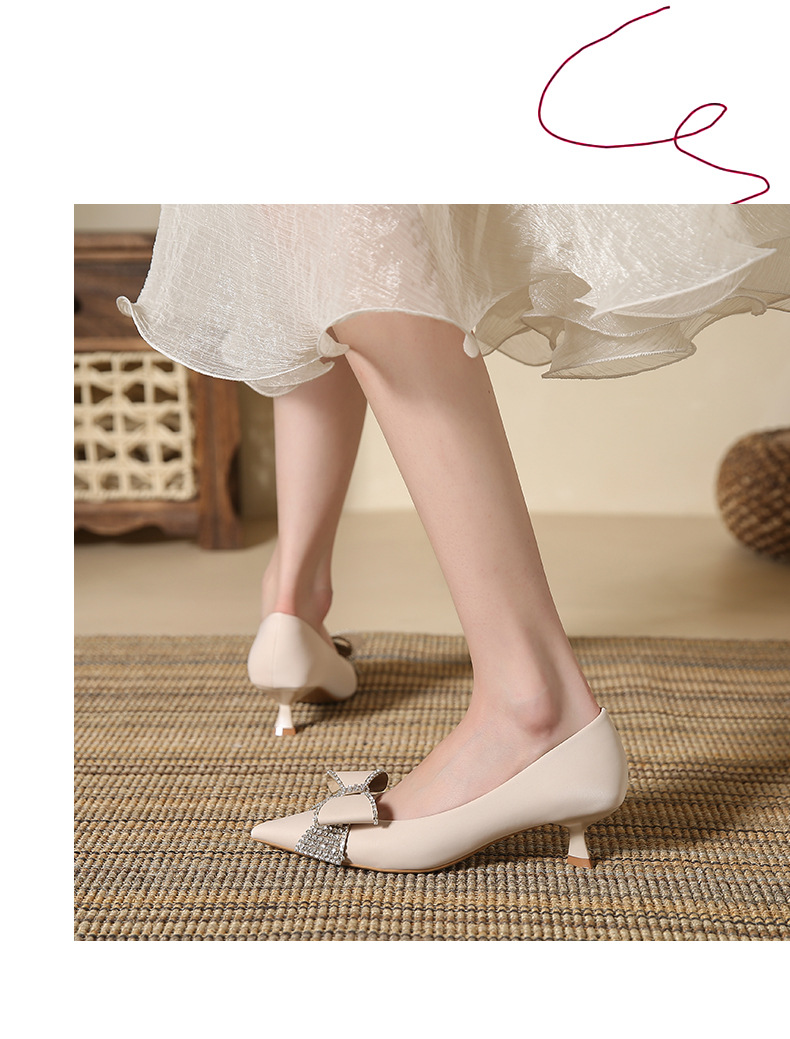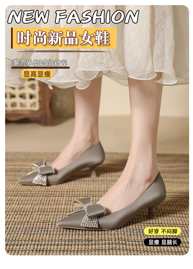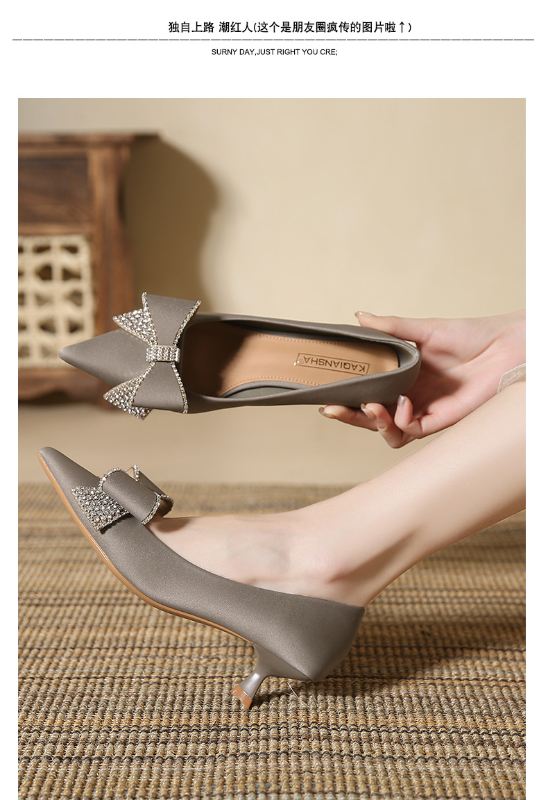 蝴蝶结高跟鞋细跟新款尖头浅口单鞋韩版鞋子春季女士玛丽珍
