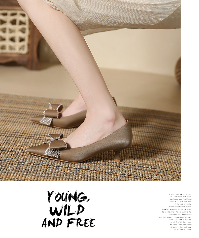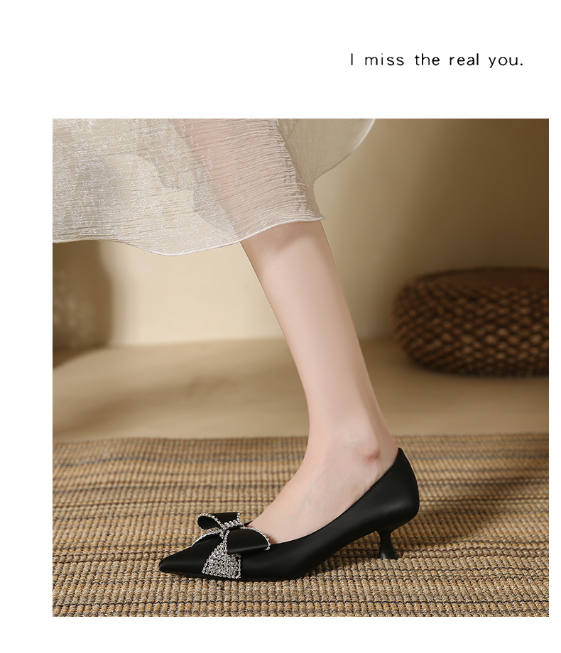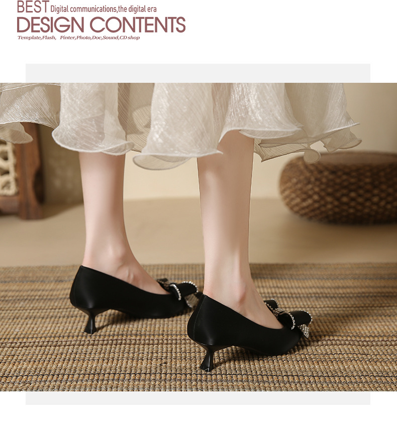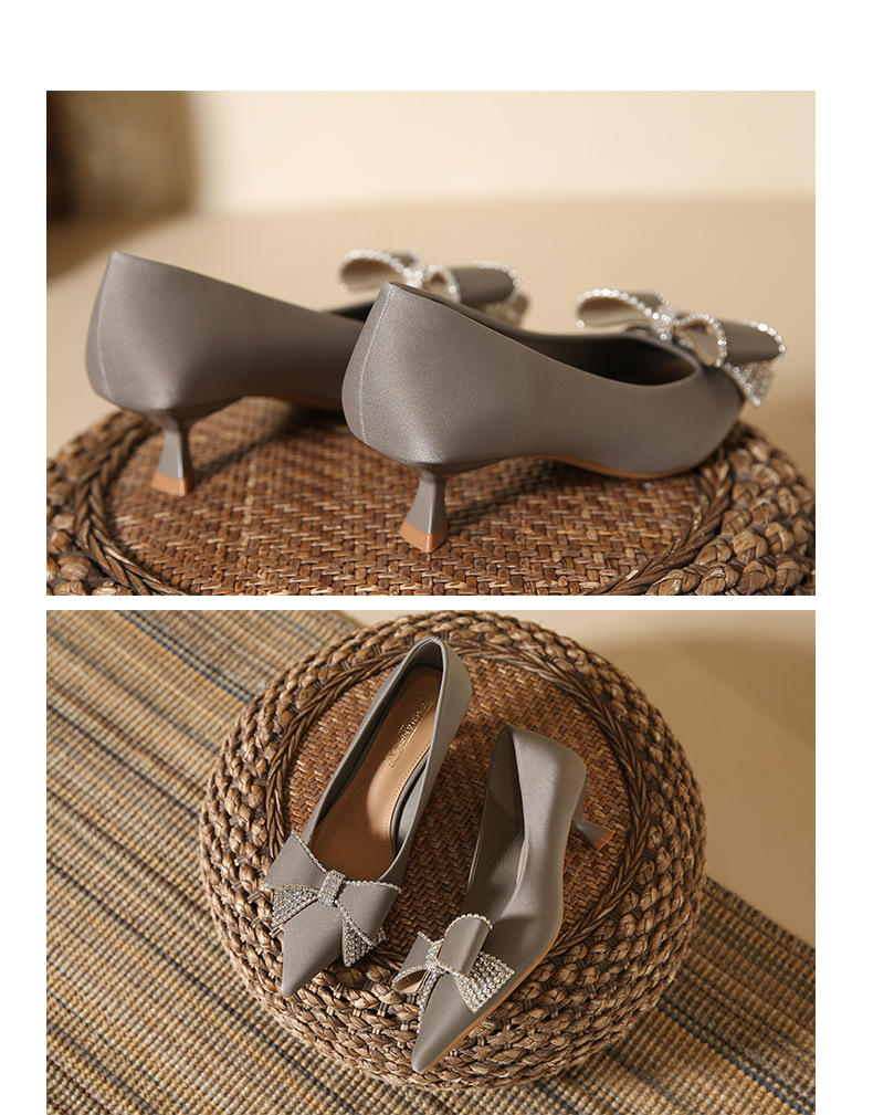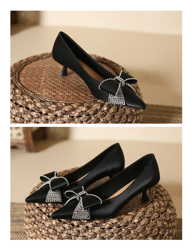 蝴蝶结高跟鞋细跟新款尖头浅口单鞋韩版鞋子春季女士玛丽珍