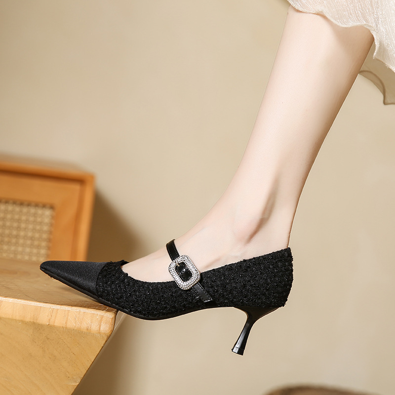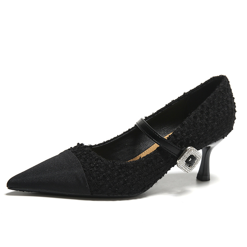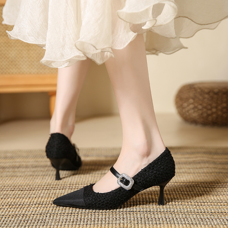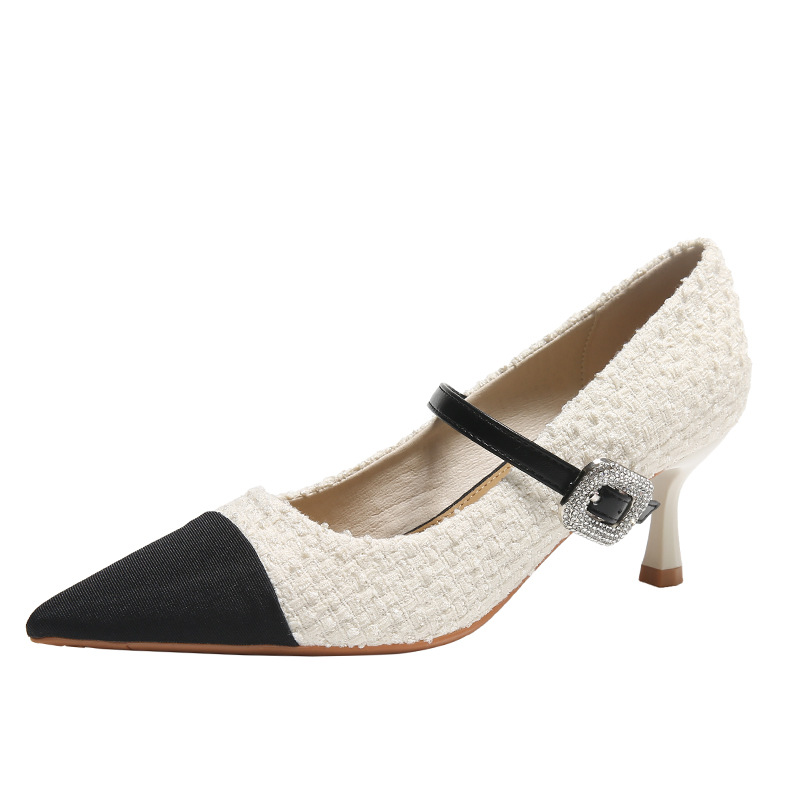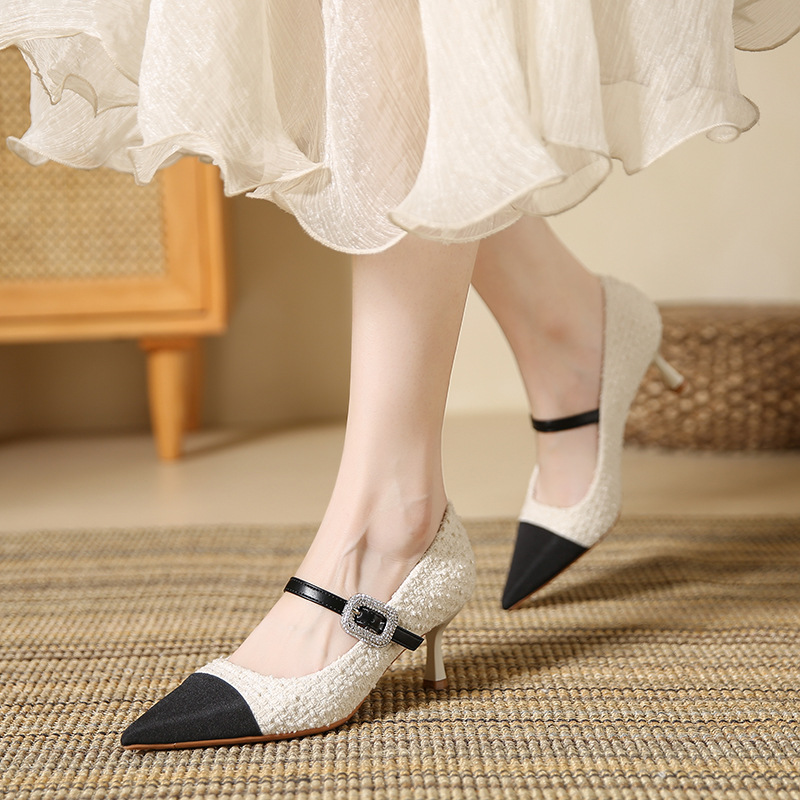 晚晚风温柔小香风拼色玛丽珍单鞋女网红百搭新款法式细跟高跟鞋