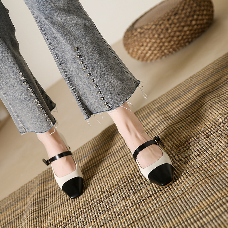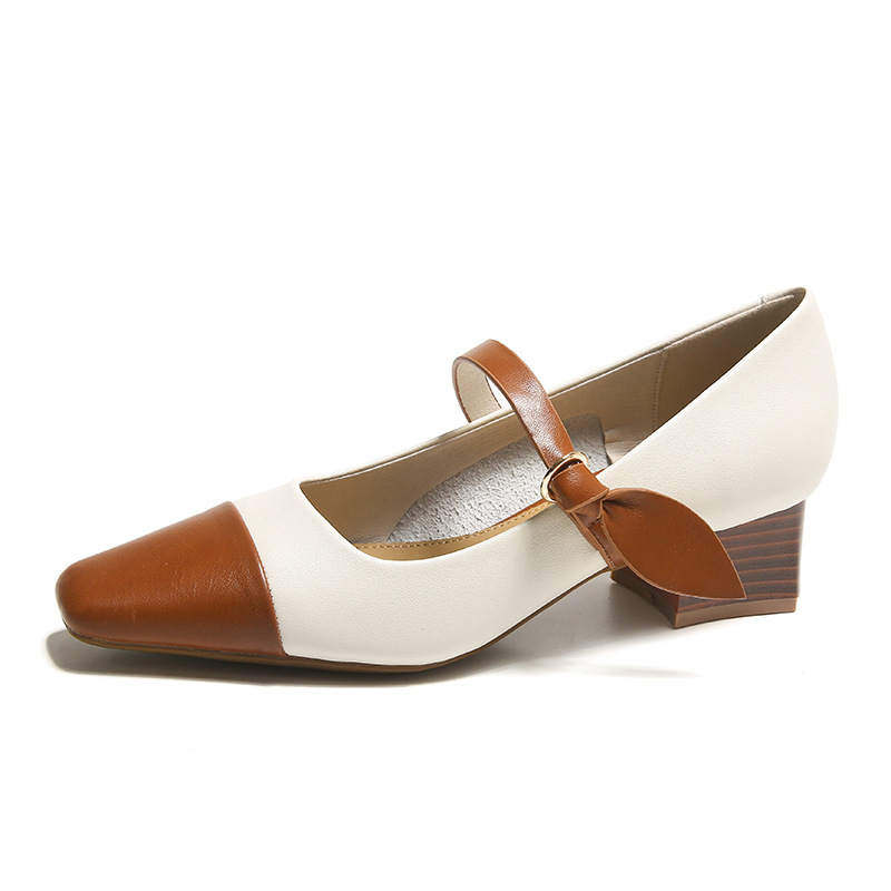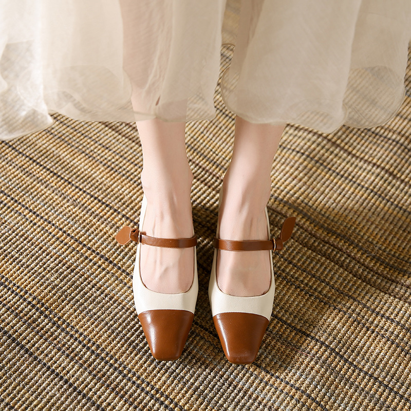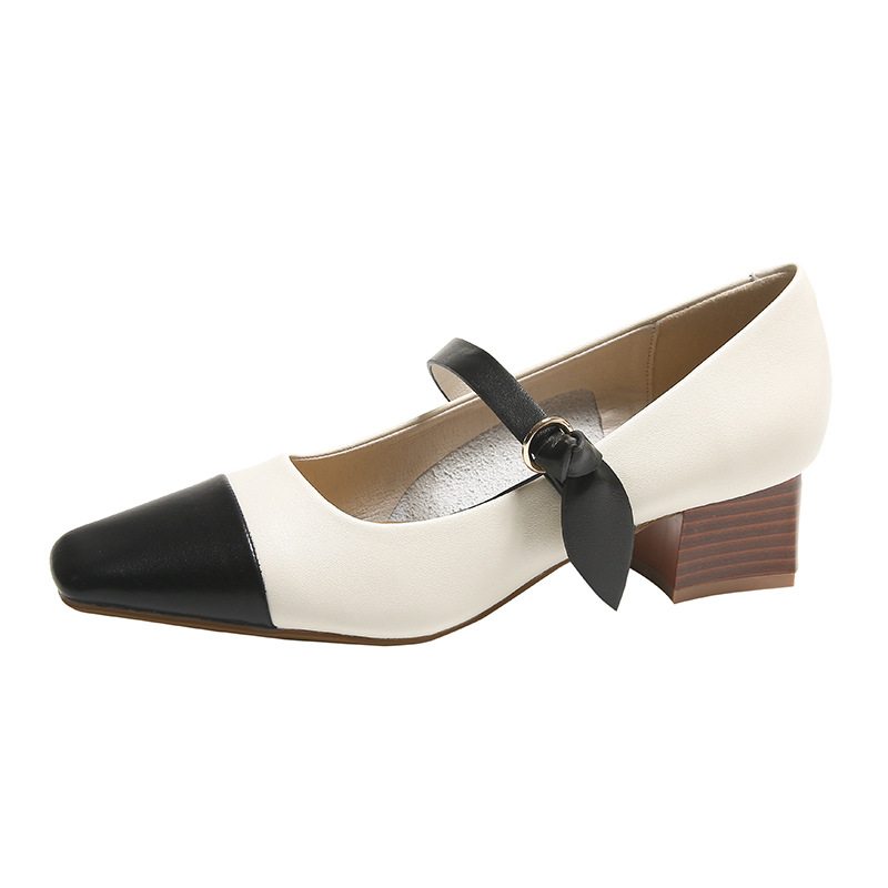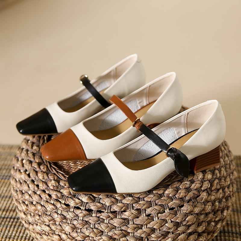 真皮复古小香风玛丽珍鞋女方头粗跟单鞋高跟鞋羊皮韩版软底新款