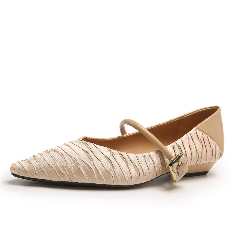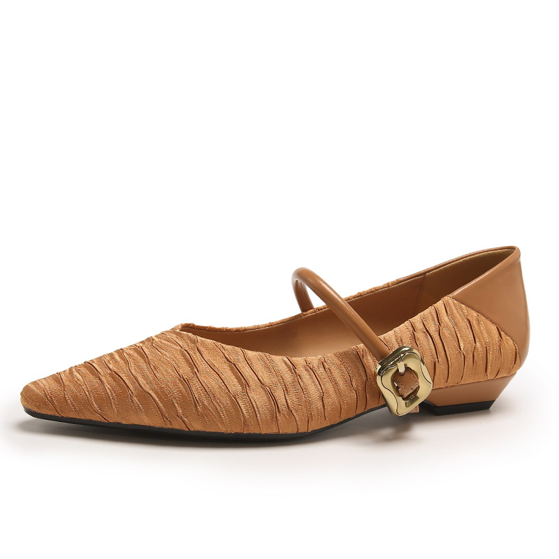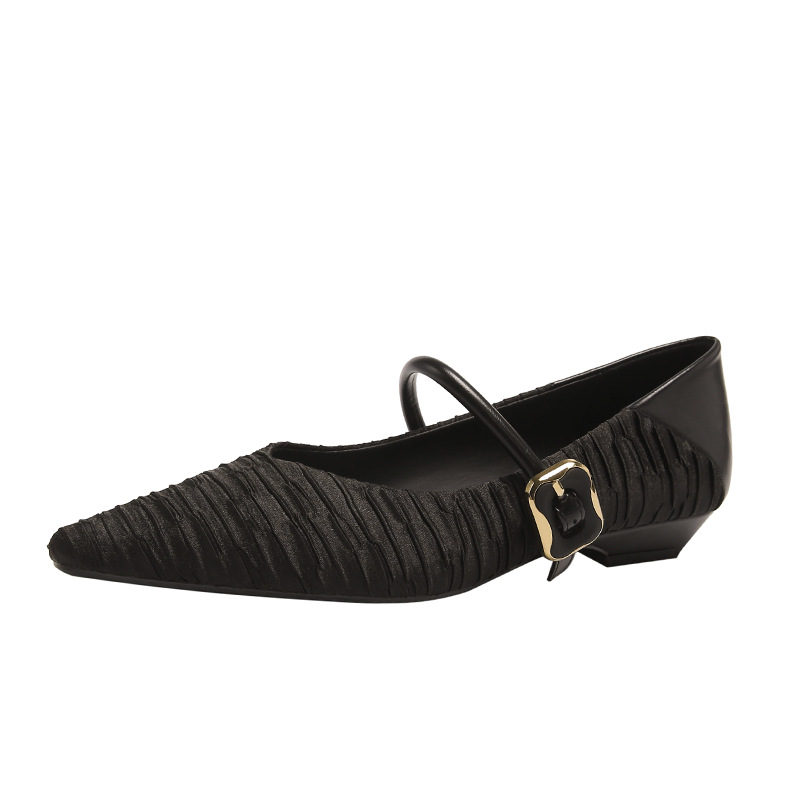 浅口单鞋女玛丽珍鞋 一字扣带浅口尖头粗跟舒适通勤鞋子女