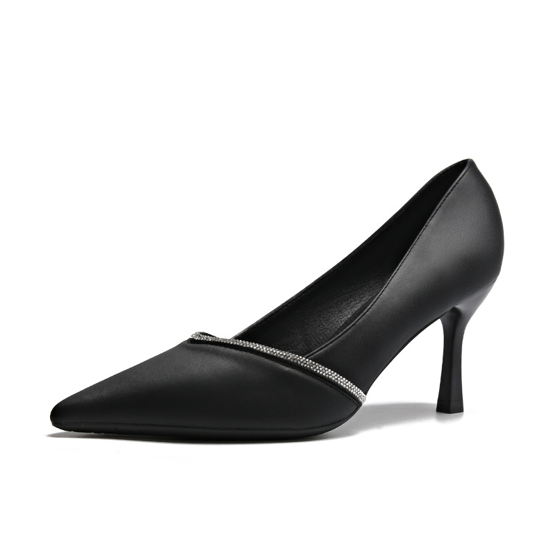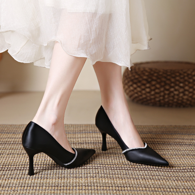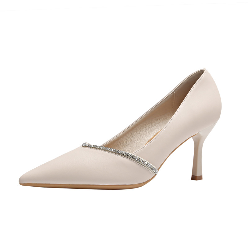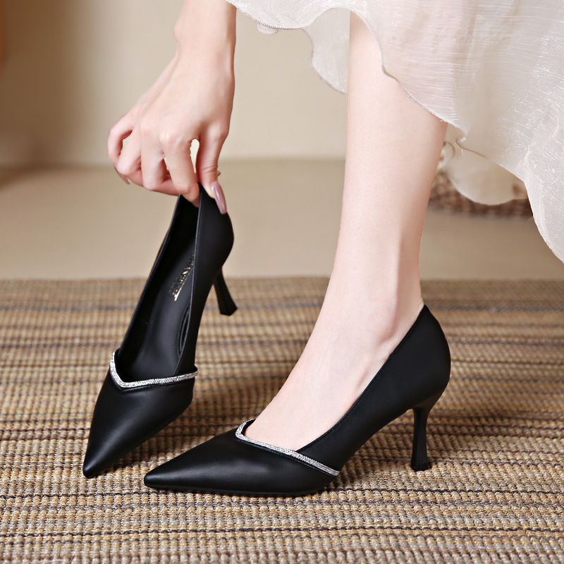 高跟鞋女年夏季新款法式尖头浅口细跟套脚水钻气质单鞋女