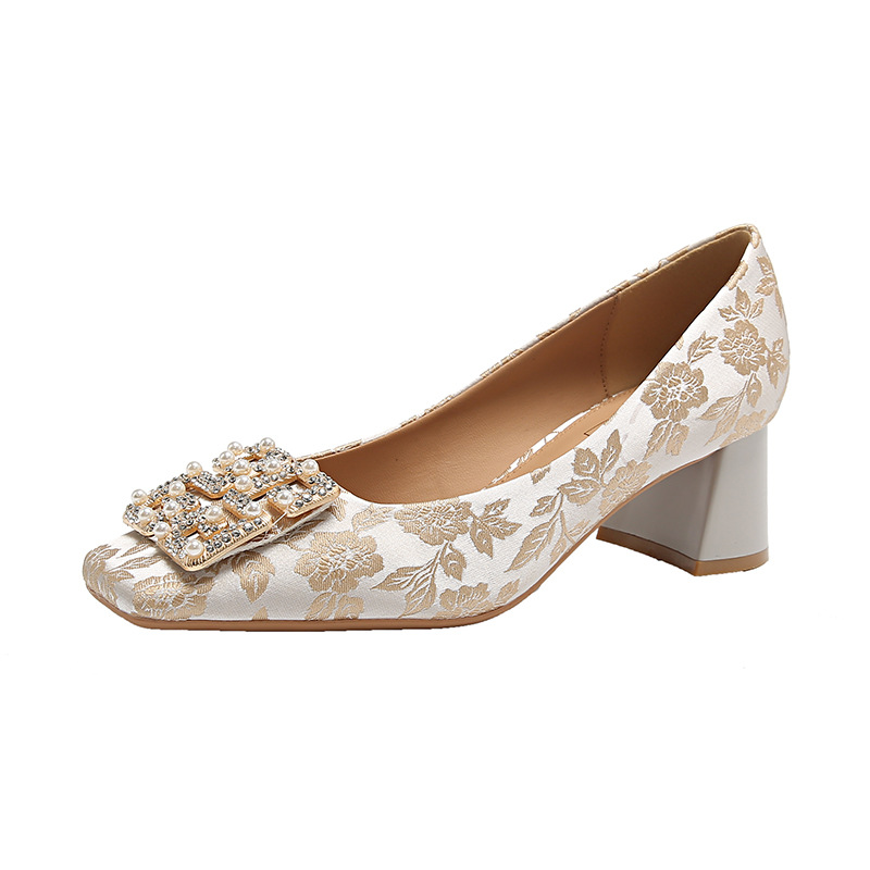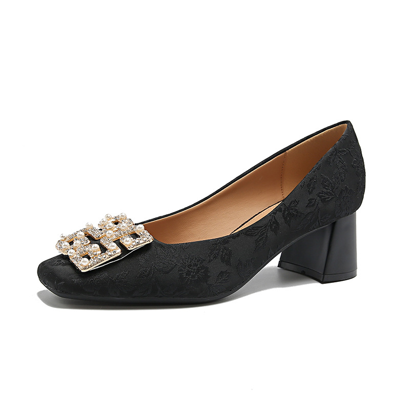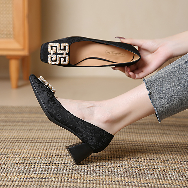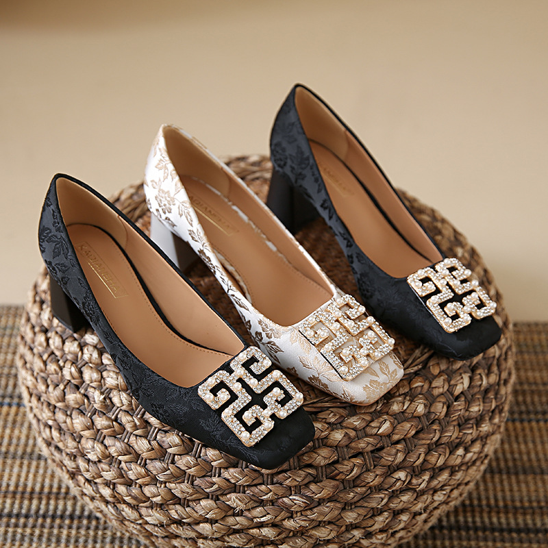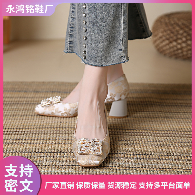 复古国风新中式粗跟单鞋女 年新款水钻百搭气质法式高跟鞋