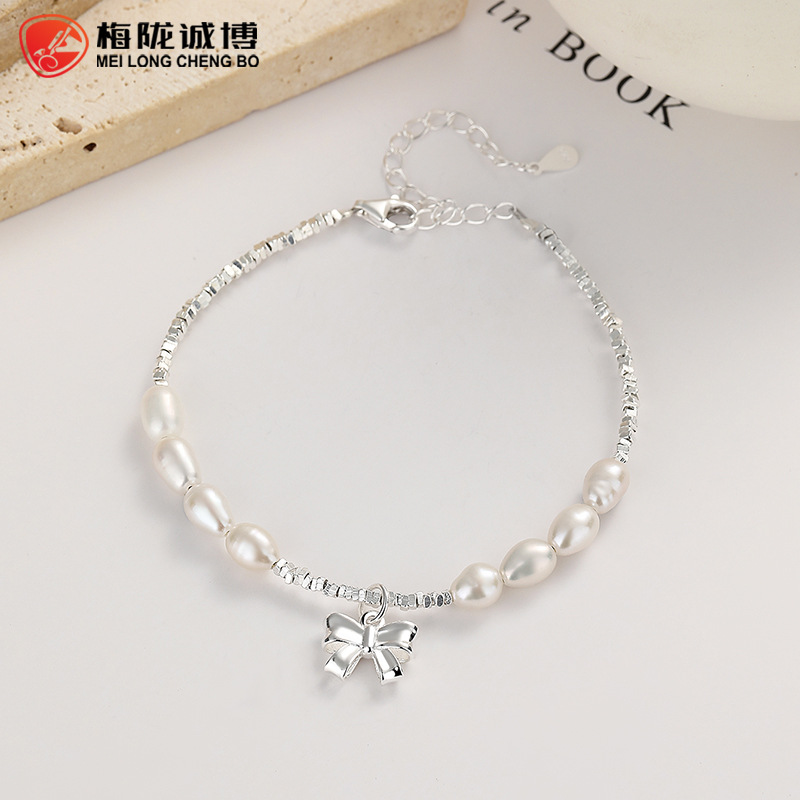925纯银蝴蝶结珍珠碎银子手链女新款个性设计感手饰ins气质手饰品