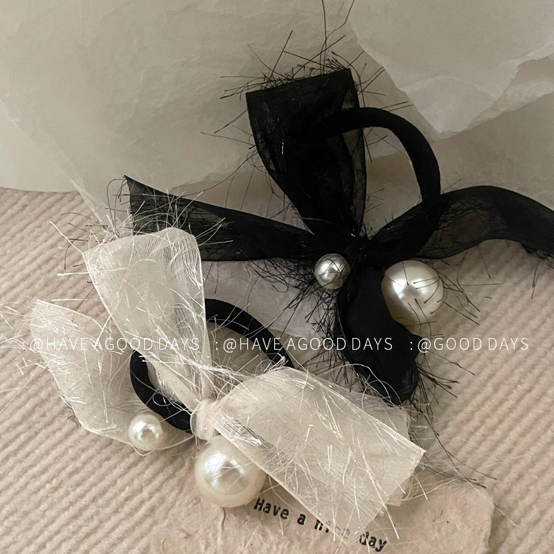 新款布艺珍珠蝴蝶结发饰小众设计感气质头饰优雅时尚气质发绳发圈