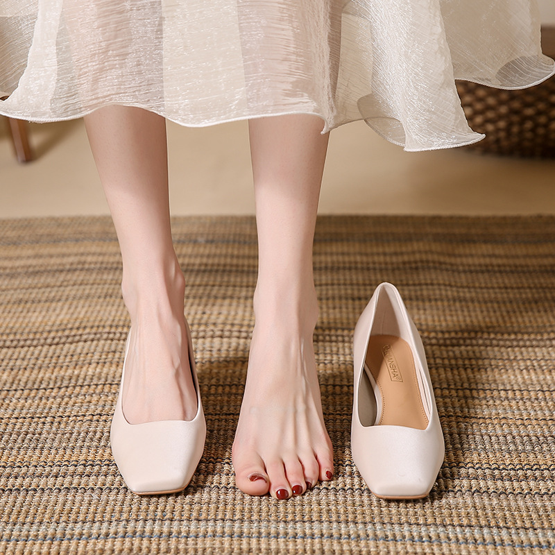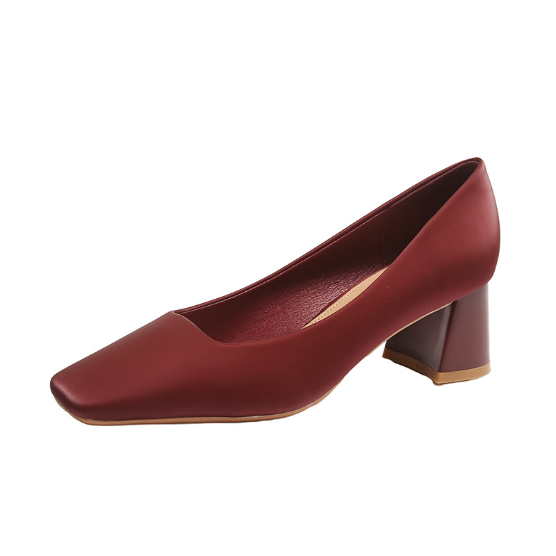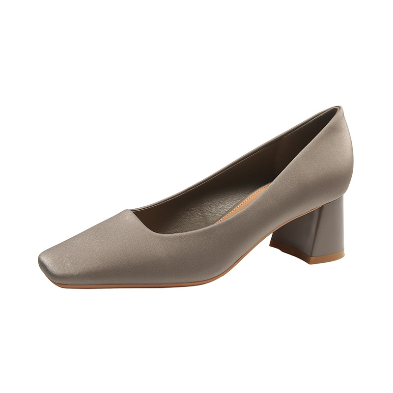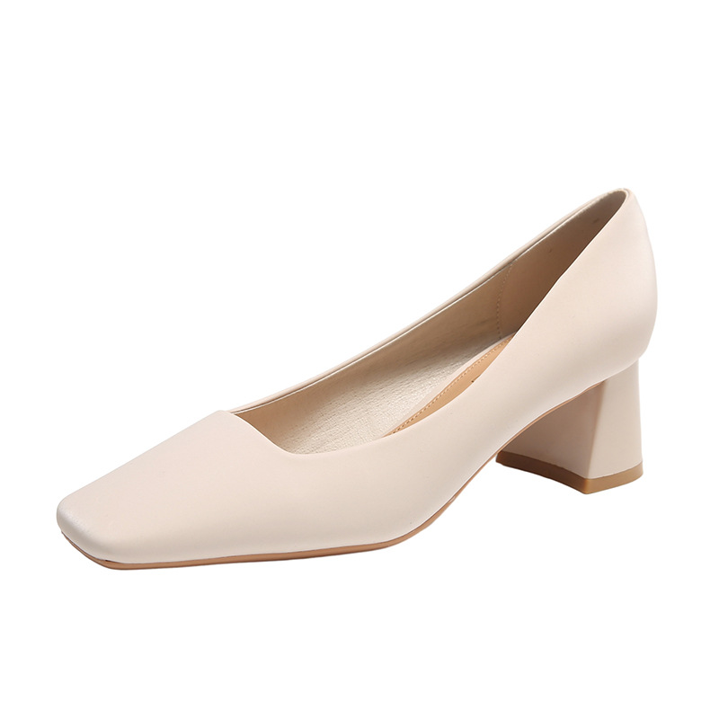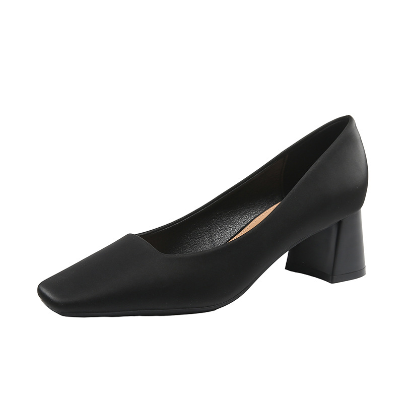 单鞋女新款春秋软皮复古方头粗跟高跟鞋通勤一脚蹬奶奶鞋炮鞋