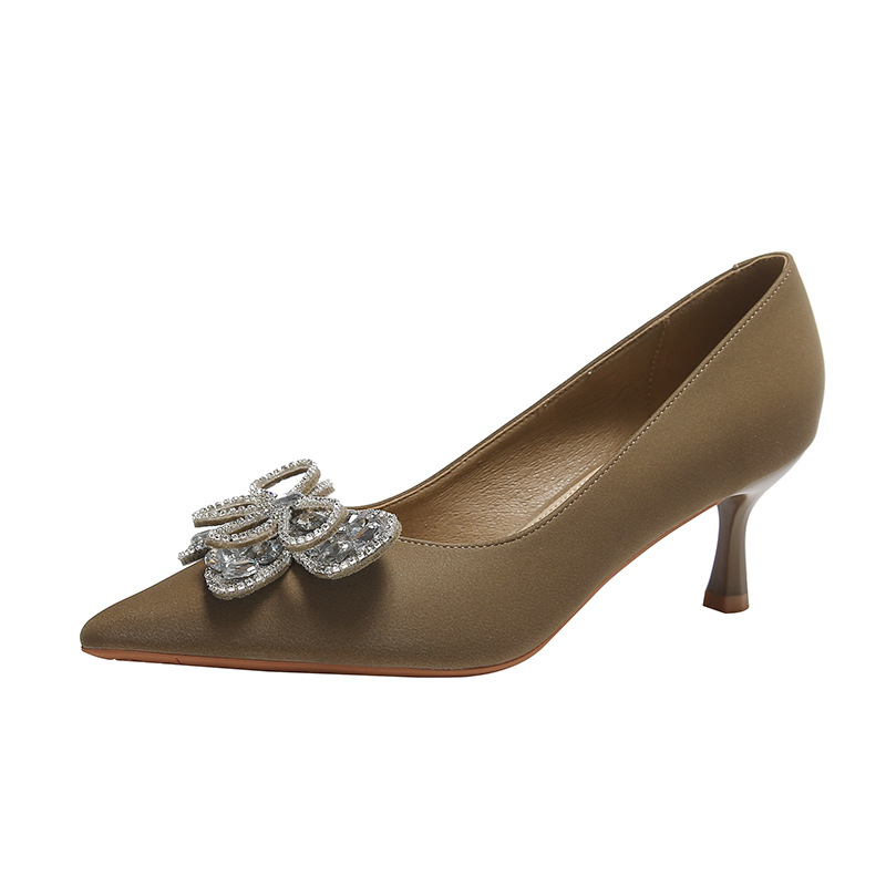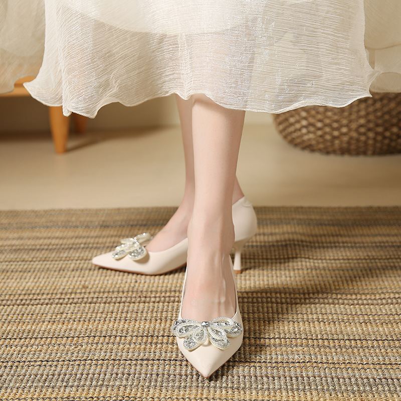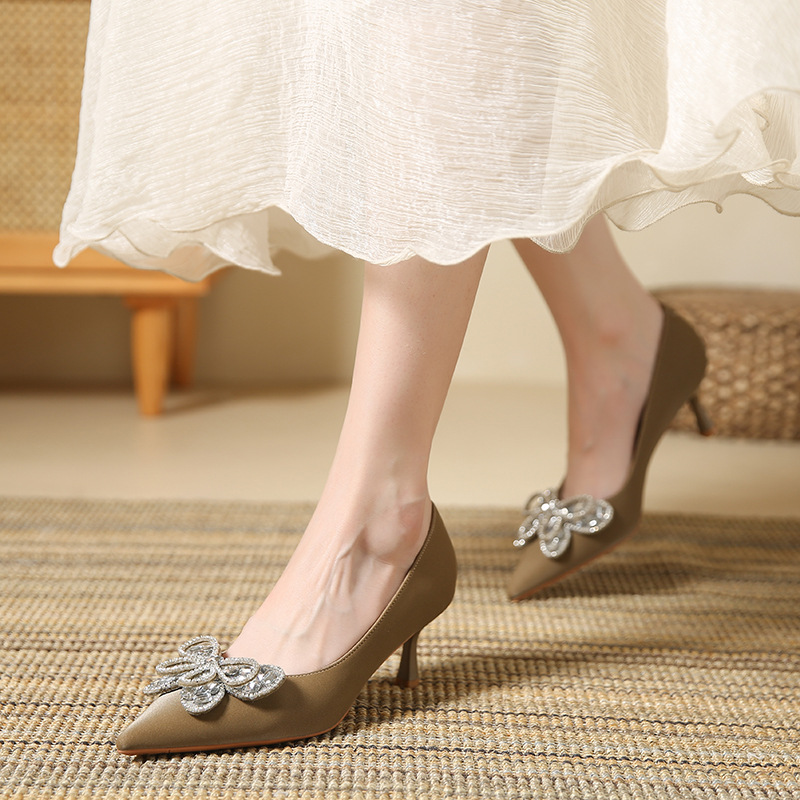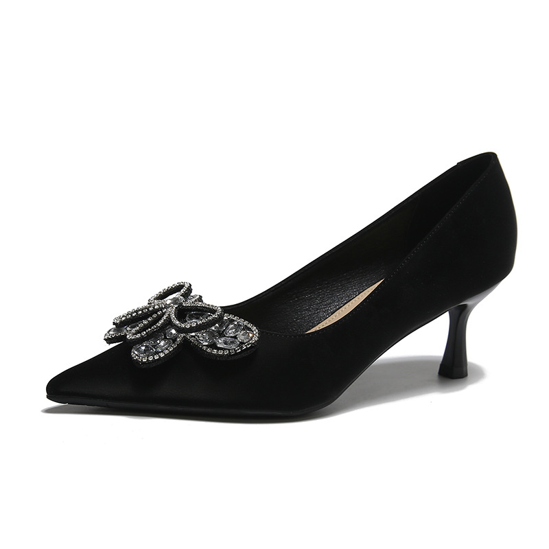 1356-97【羊皮】韩版水钻蝴蝶细跟高跟鞋女职业通勤不累脚女鞋子