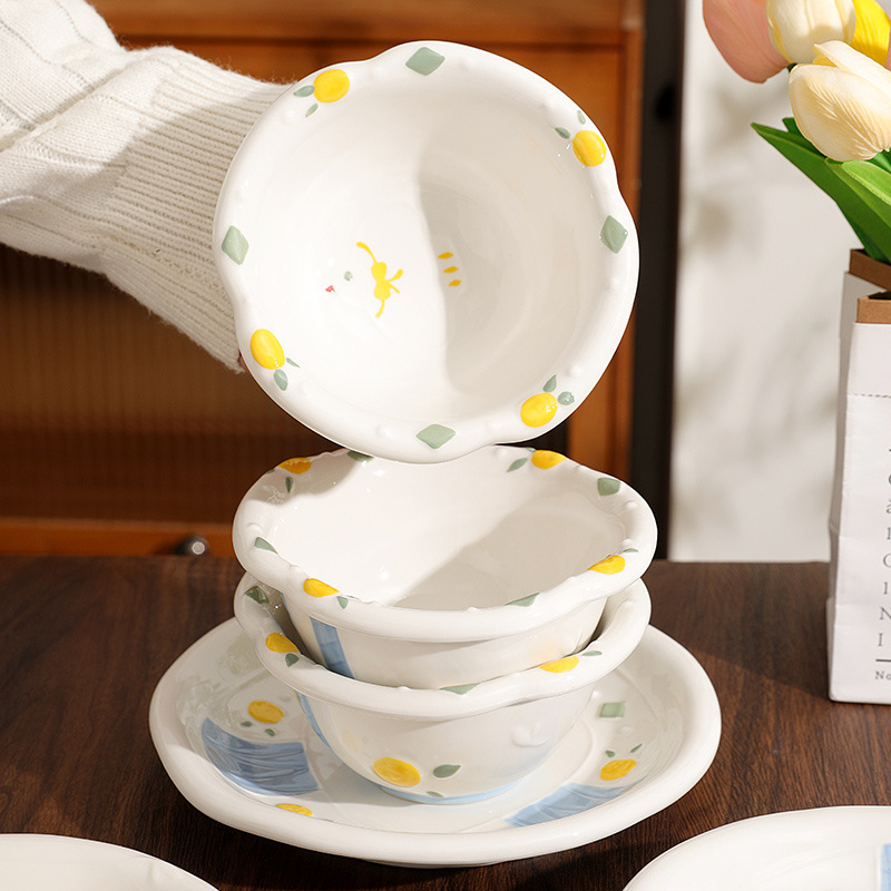 可爱1/4吋套筒扳手鸽陶瓷碗碟浮雕釉下彩家用饭碗装泡面碗盘子鱼